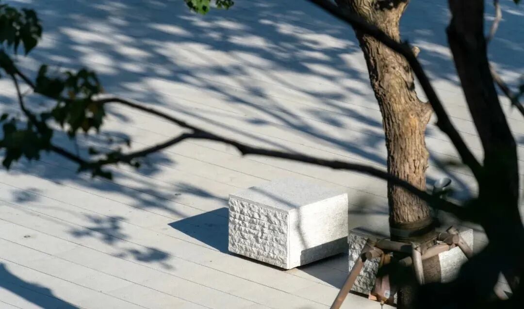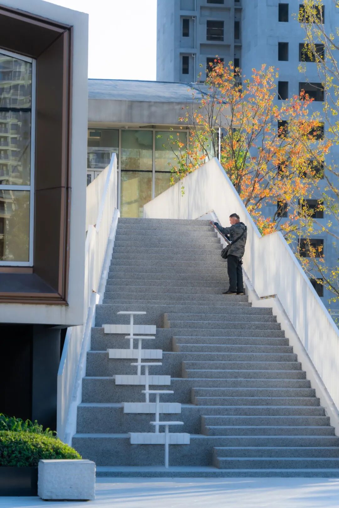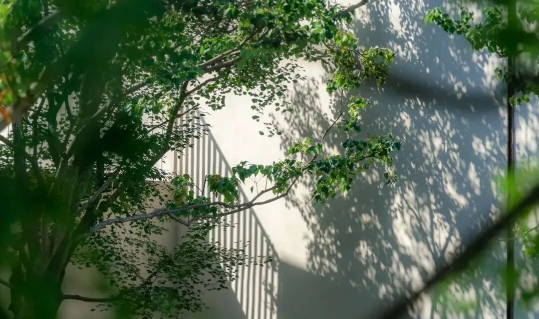 建筑墙面与地面铺装形成的大面留白上,光影在跳跃,让整个空间不再沉寂,富有情感。