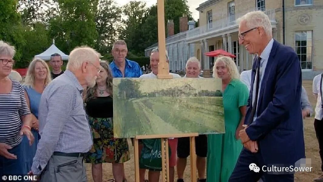 拥有这件画作的匿名人士透露,1957年,他的祖父在英国 Trimley St Marty 村庄的一个火车站工作时,遇到了年仅20岁的大卫·霍克尼。当时,霍克尼和其他几个人拎着好多绘画耗材,恰巧快到饭点了,祖父就邀请他们去家里吃午饭。随后,祖父从这些年轻艺术家每个人那里买了一幅画。这是一幅粉彩画,描绘了村庄风景:柔绿色的一片广阔田野、人迹罕见的小径、远处的小村庄......并且可以在角落里看到隐隐若现的签名。经过估价,这幅画作至少价值3.6万美元。
