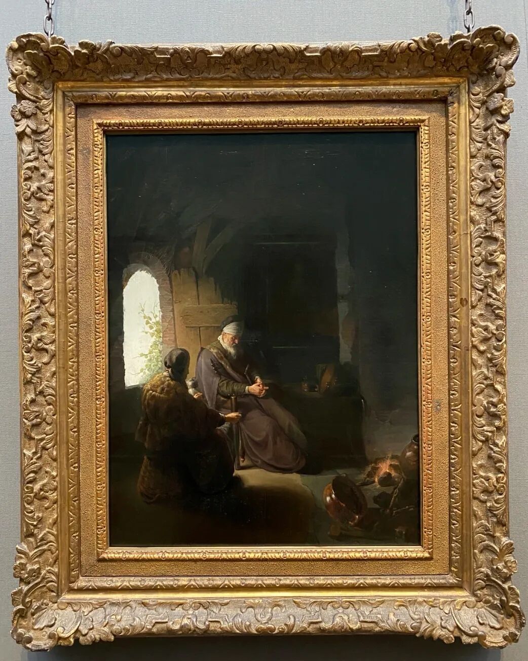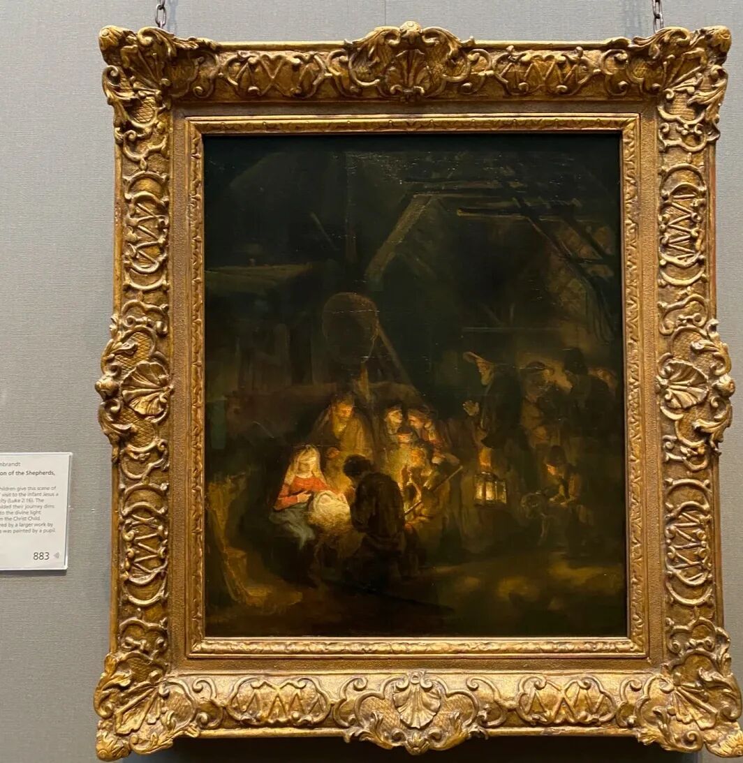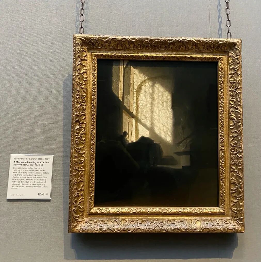 伦勃朗的绘画风格独特,喜欢采用高光的亮色描绘在阴暗背景下的人物。