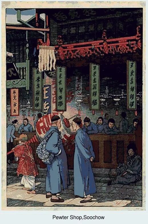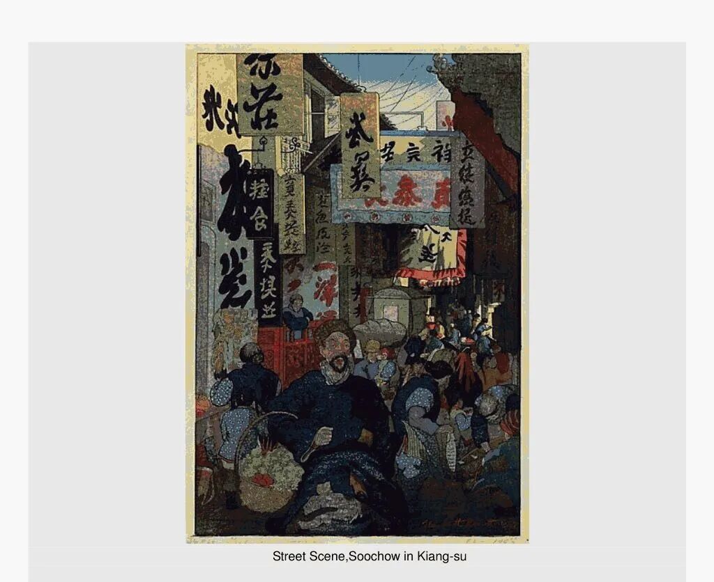 她对木版画记录下清朝至民国初期的中国,让我们看到原汁原味的昔日中国风貌,狭窄的街道,悬挂的招牌,叫卖的小贩,熙熙攘攘,今日已难得一见。
