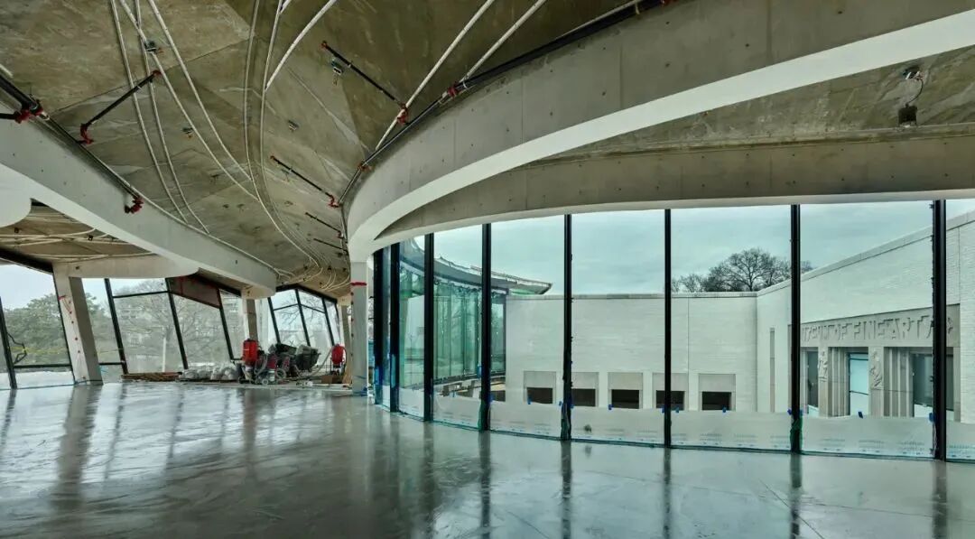 美术馆中央的空间向大型公共区域开放,褶皱屋顶向外伸展,为博物馆创造了新的入口。