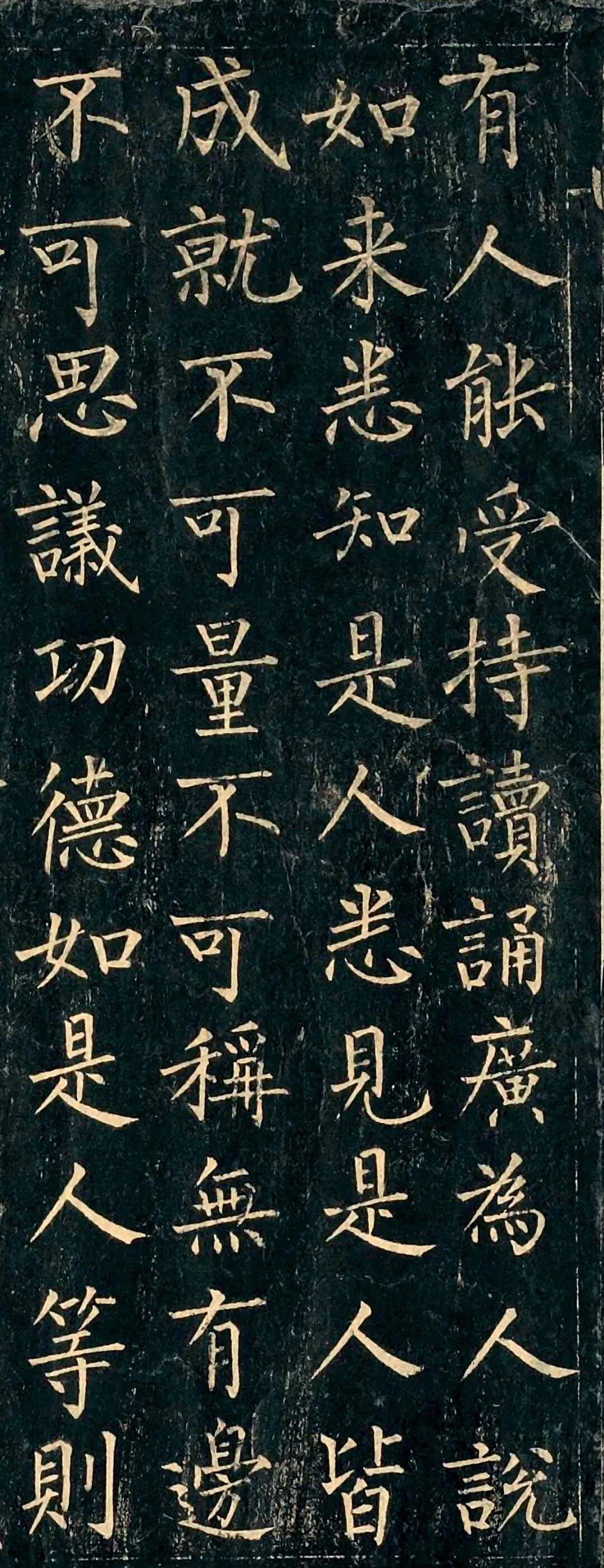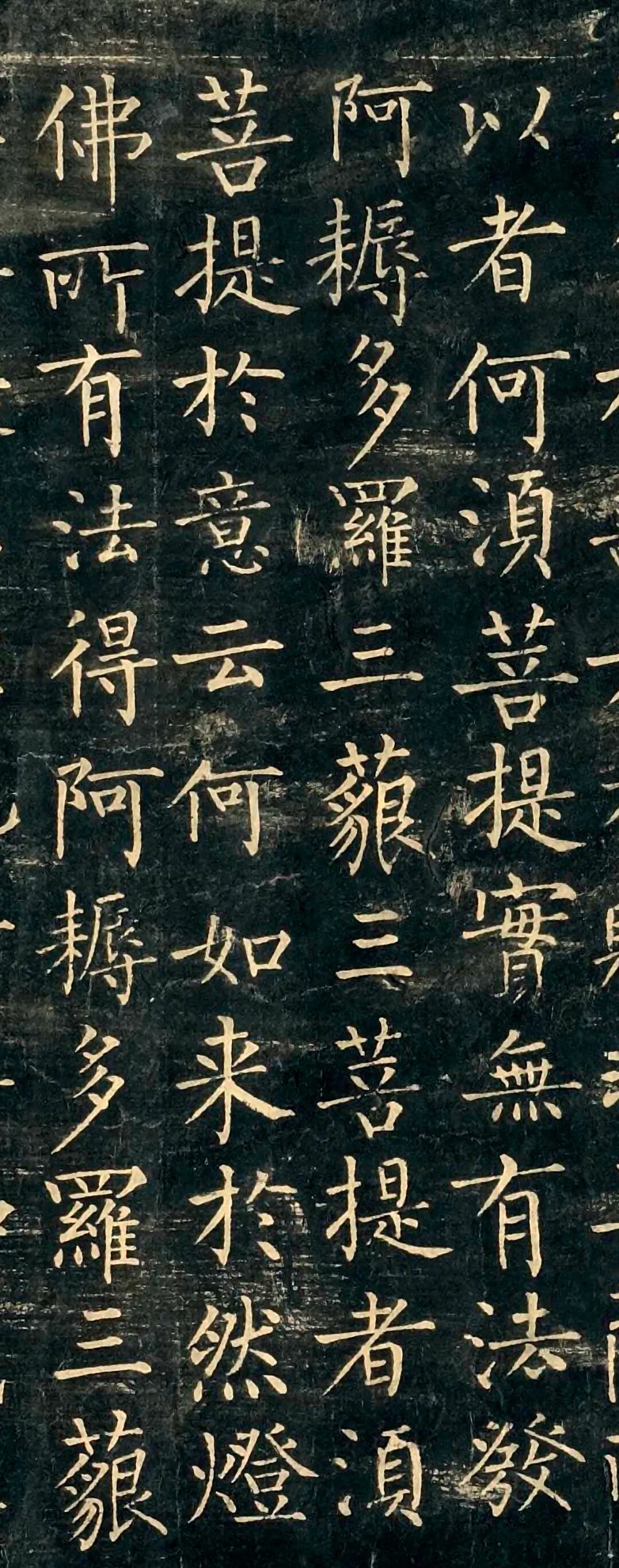 据考证,柳公权的这卷巨幅楷书《金刚经》乃是在公元824年所刻,这一年柳公权47岁,当时的他已经名满天下,此作刻成之后,有诸多的唐拓本流传于世,曾经风靡一时,可惜的是,到了宋代此碑的原石已经断成了12块,几乎大部分的自己都已经剥蚀,后世这12块原石也相继被毁。