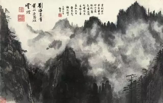 刘海粟的黄山情结越发地浓郁,他在自己的《黄山图》上题写了石涛诗句“漫将一砚梨花雨,泼湿黄山几段云。”来抒发心襟。