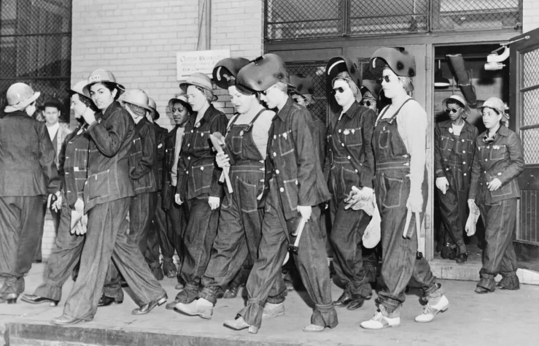 她们勇敢迈出家门,开始践行自我;穿上各种各样的牛仔裤与连体服,纷纷去参加工作。