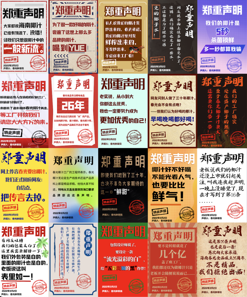 已经靠此出圈过的江小白凭借连发100张“郑重声明”文案