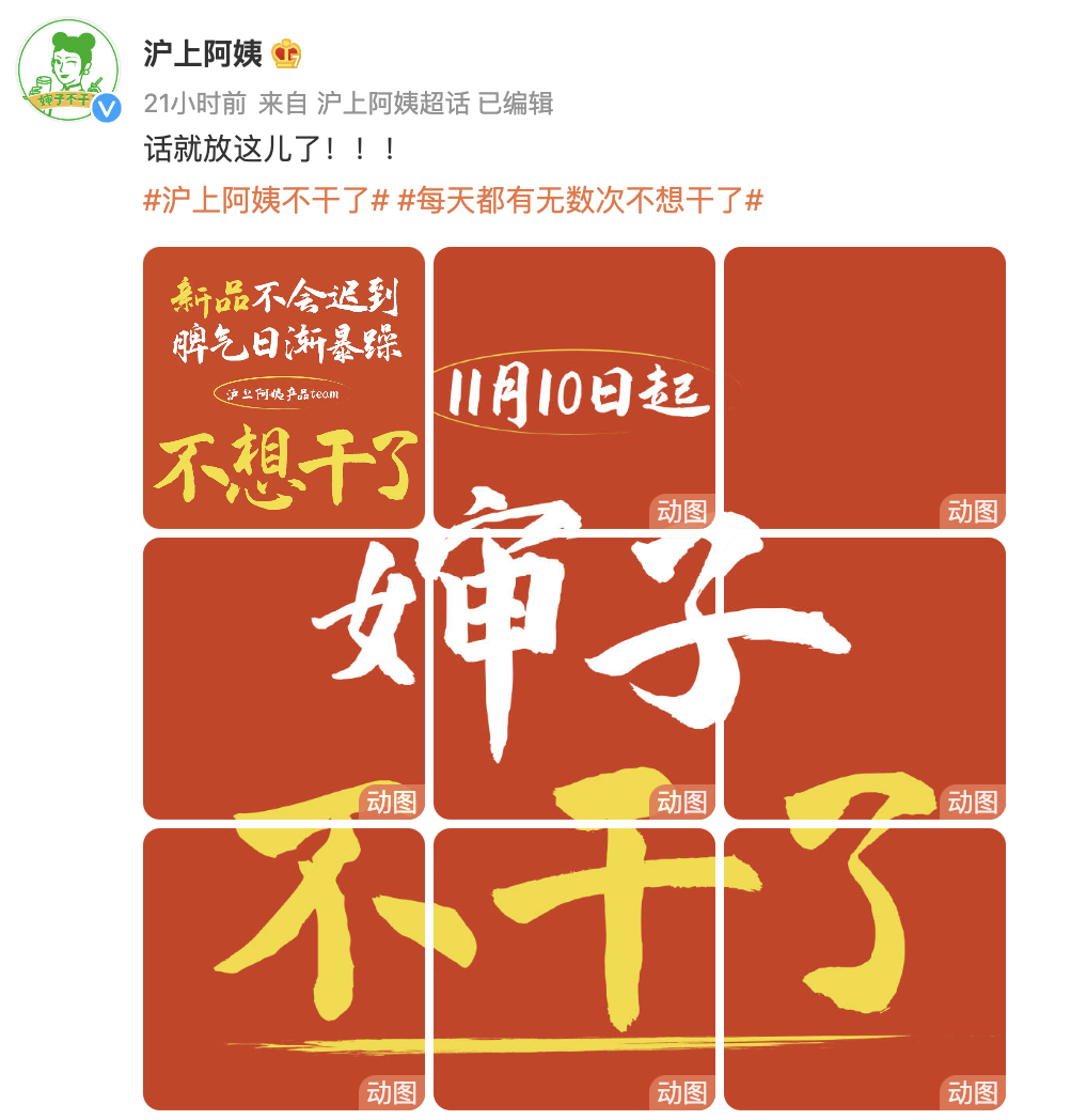 现有沪上阿姨微博“摆烂”直呼“不想干了”