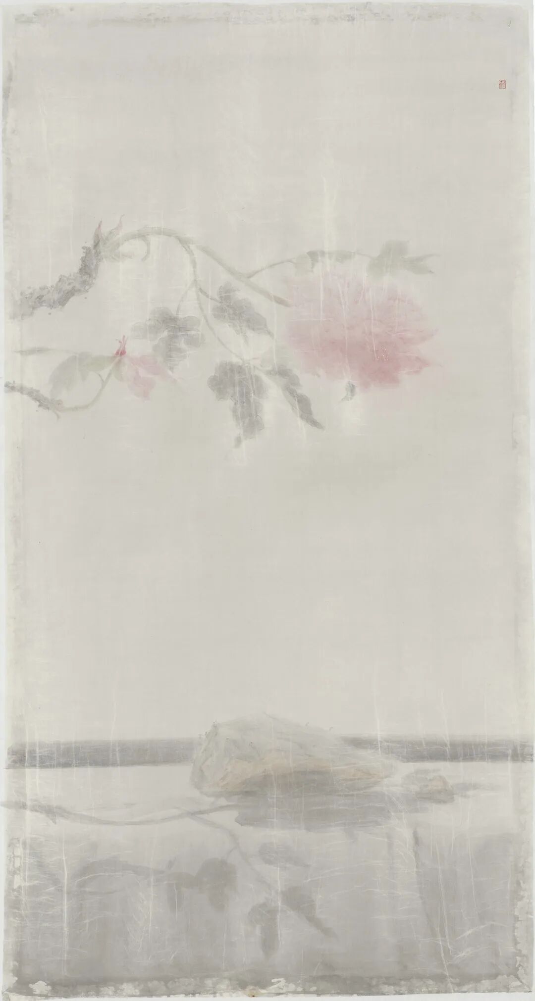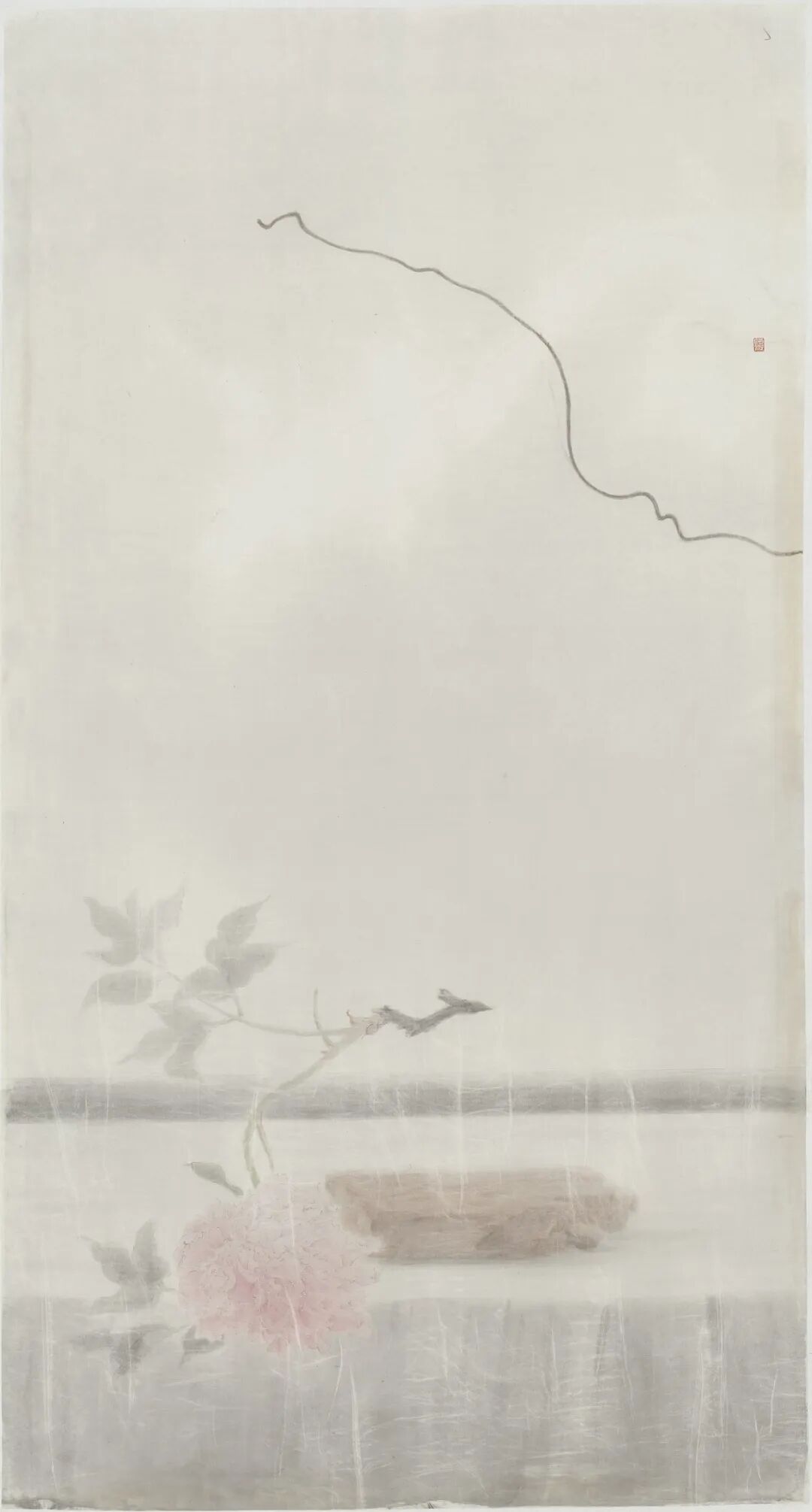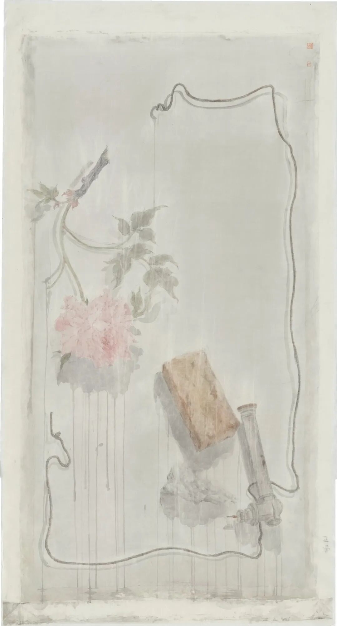 身为当代重要的水墨艺术家之一,刘明波被视为中坚的主要力量,其清静、细腻、简约的语调将我们逐渐引到一个寂静渺远的世界。在近年的作品中,刘明波将对物的叙述与个人生活感受揉和到一起,令人印象深刻,作品中那些牡丹花卉与曰常废弃物品进行了重新组合、构架出新的场景。诸如牡丹、铁丝、砖头等物象的反复出现,以及低饱和度的色调处理,语言和视角都汇聚到了其个人的内心空间,即打破了传统文人画的格局,又别于西方静物式的描述,在东方空灵柔美的美学经验中,找到了艺术家个人的时代之感。