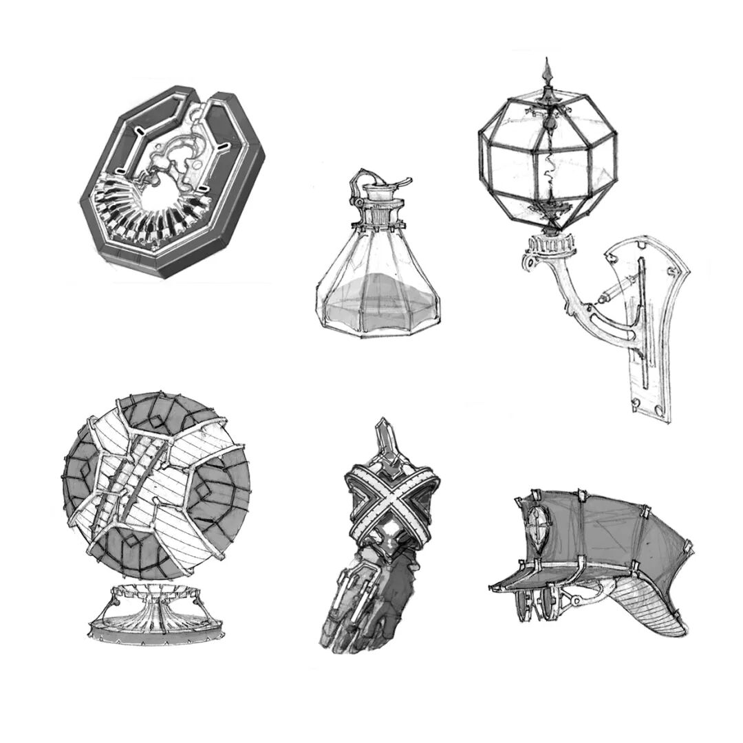 除了采用世界顶级的三渲二技术,找到适合影视化叙事的绝佳平衡点外,《双城战记》融合了法国装饰艺术、新艺术流派与蒸汽朋克风格设计来构建了一座蒸汽朋克都市。其中概念设计部分,还有我们熟悉的Joon Ahn所做出的的设计。