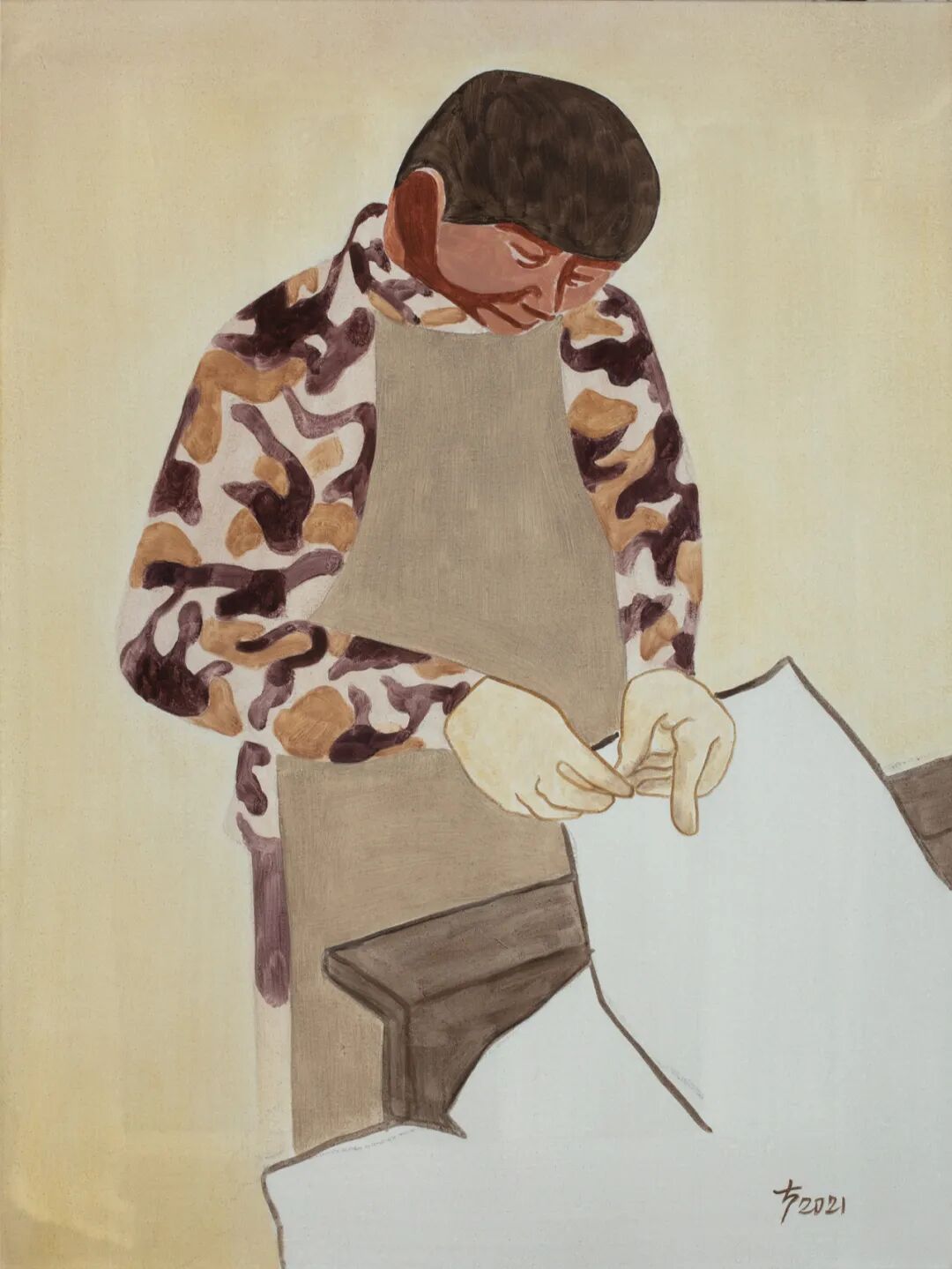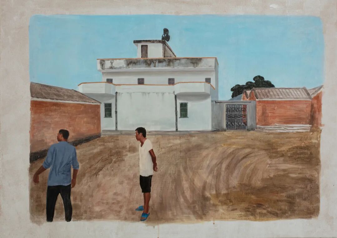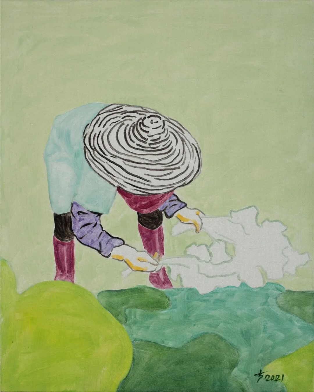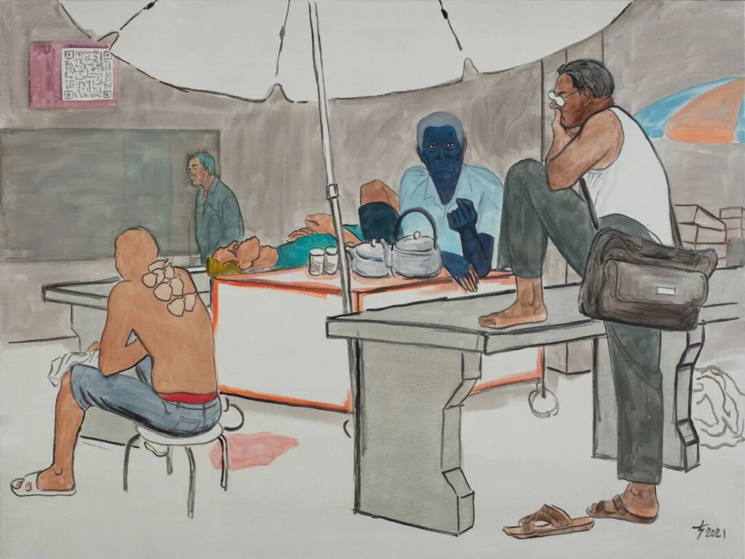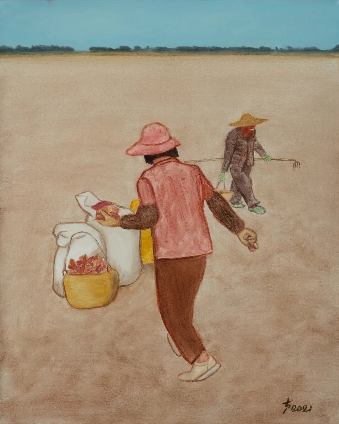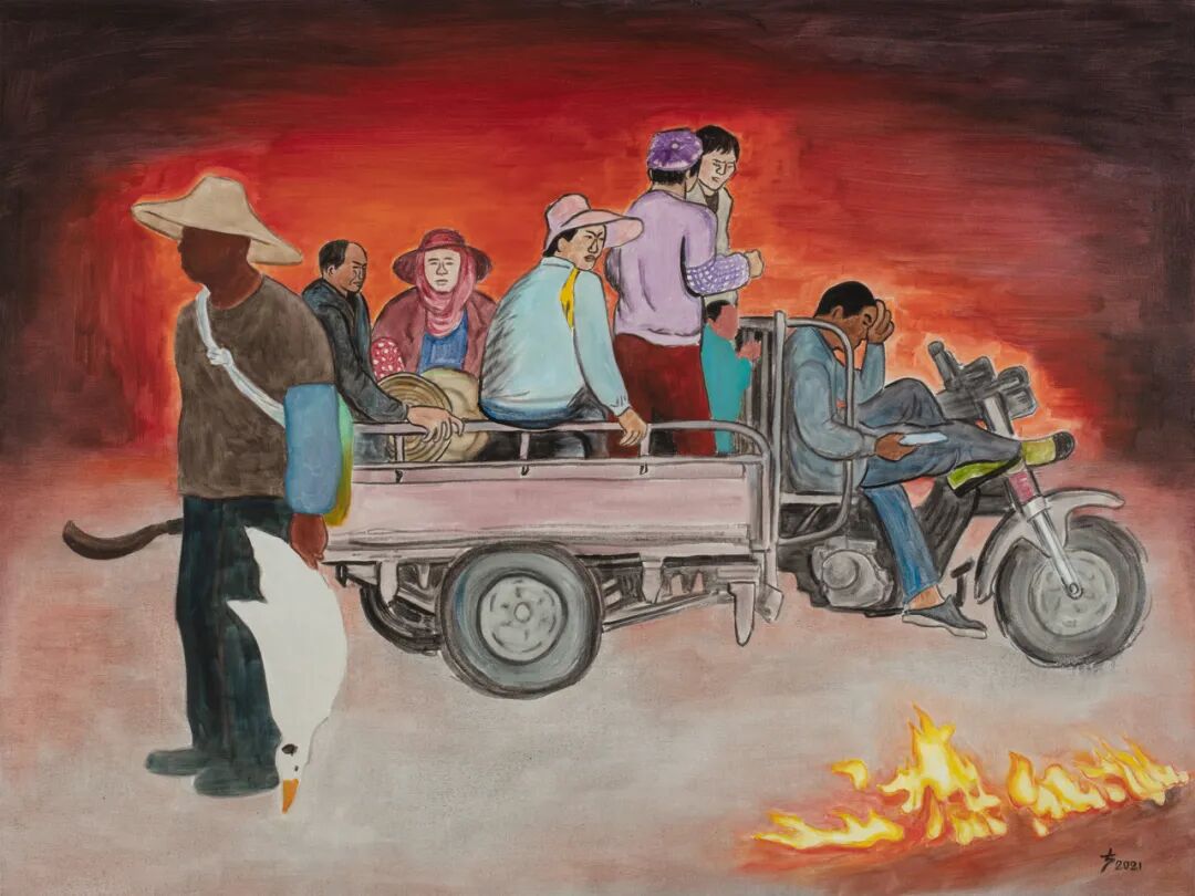 刘声是一位很关照现实的画家,他行走在珠三角,观察并记录着周围的人与物、人与人以及人与村,他们的模样、他们的关系,他们的变化。刘声通常会拍摄下周围的景象再作画,力求最大限度地还原大时代背景下社会的变迁。