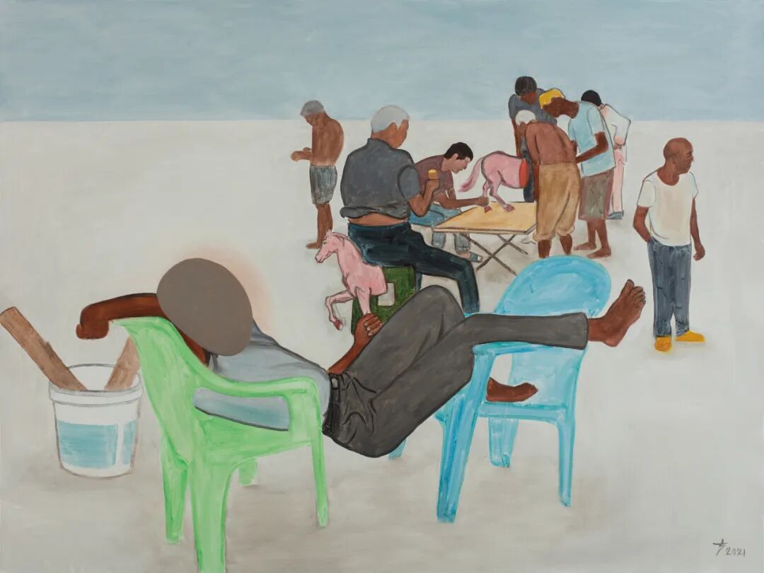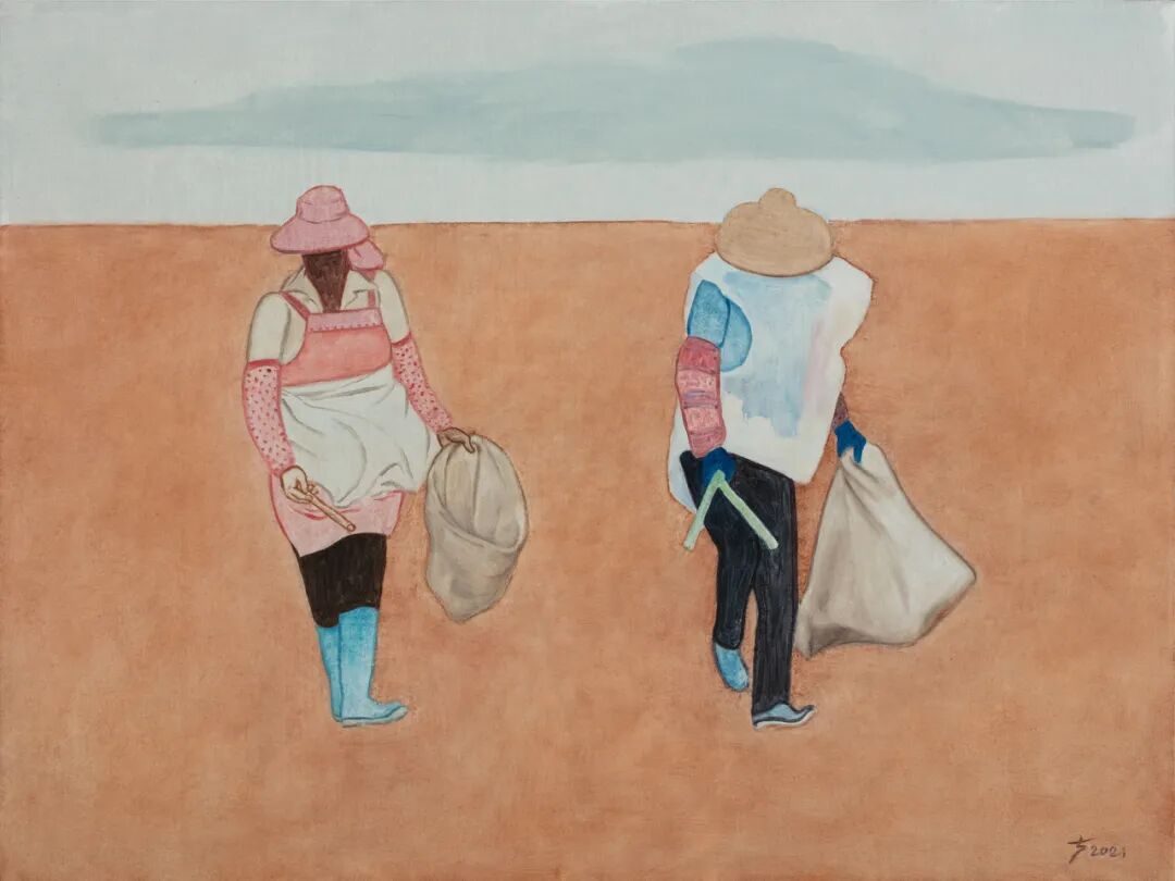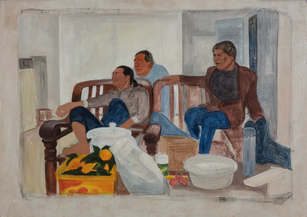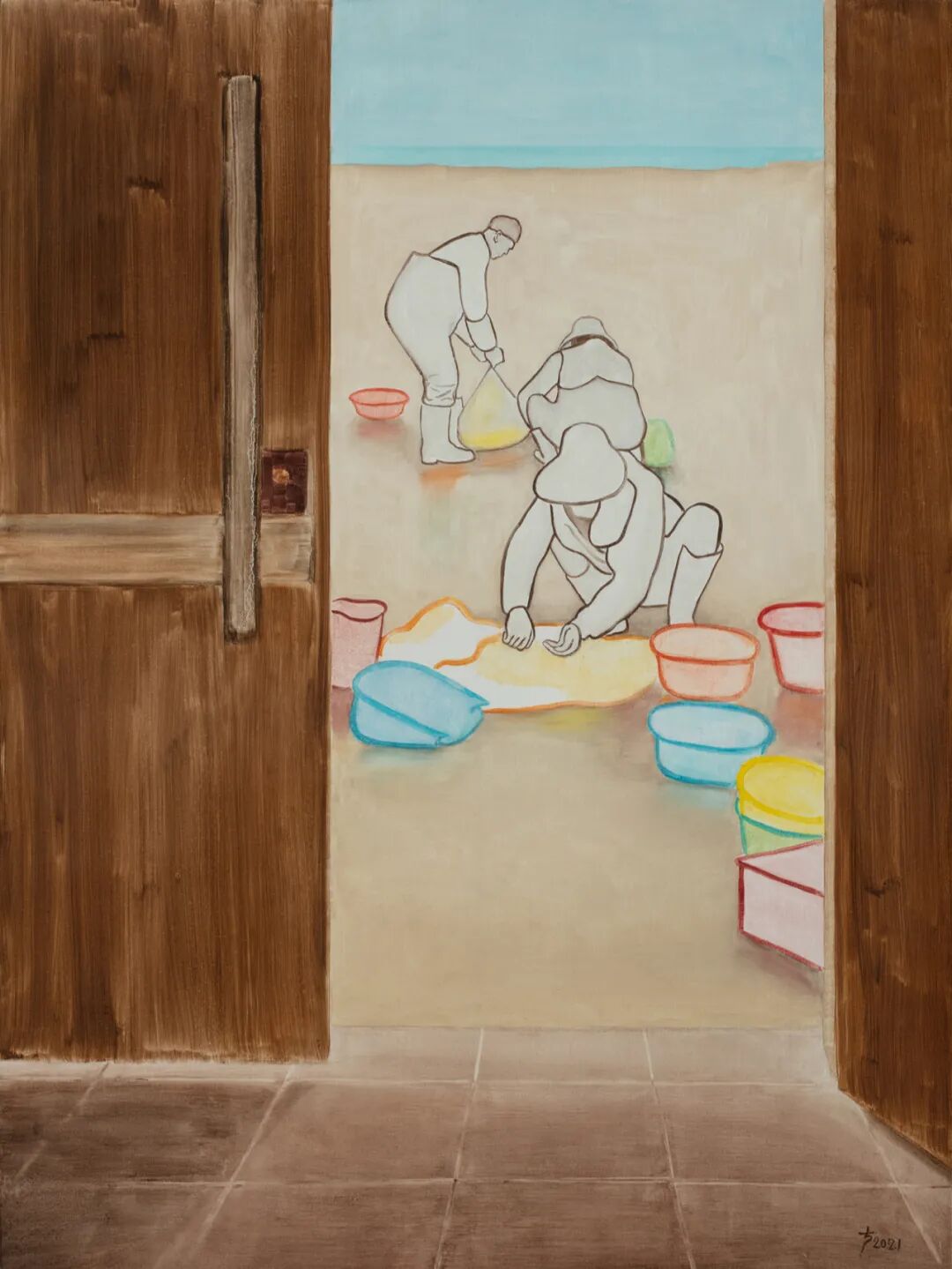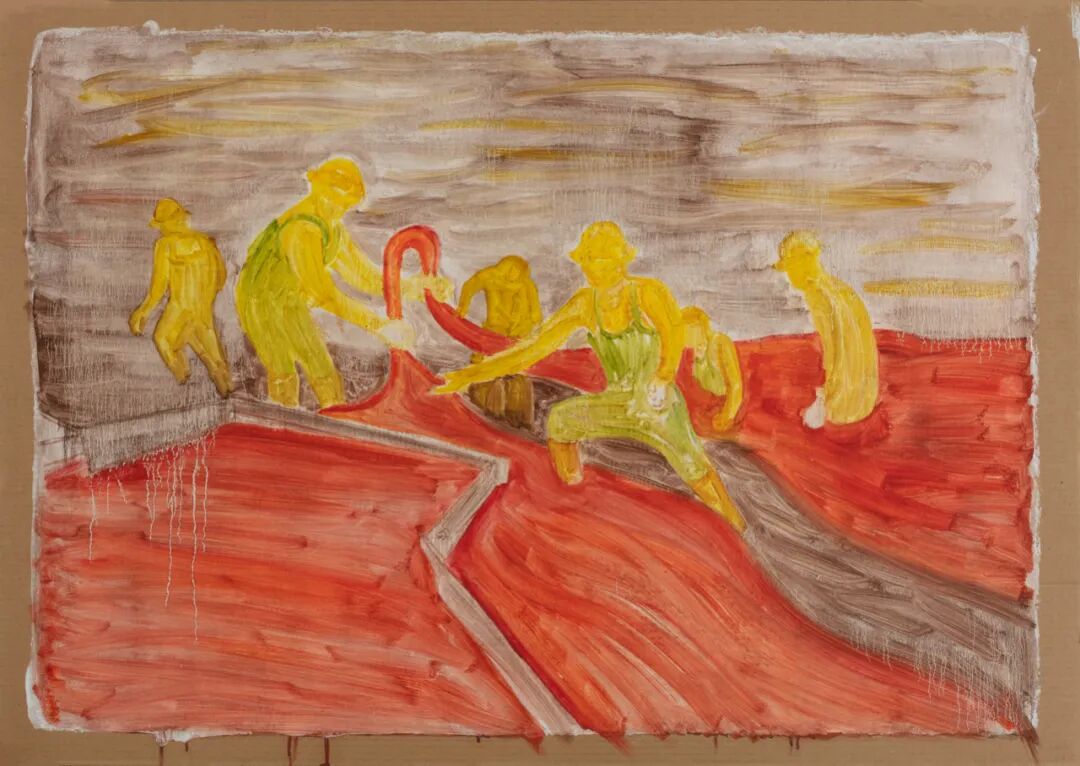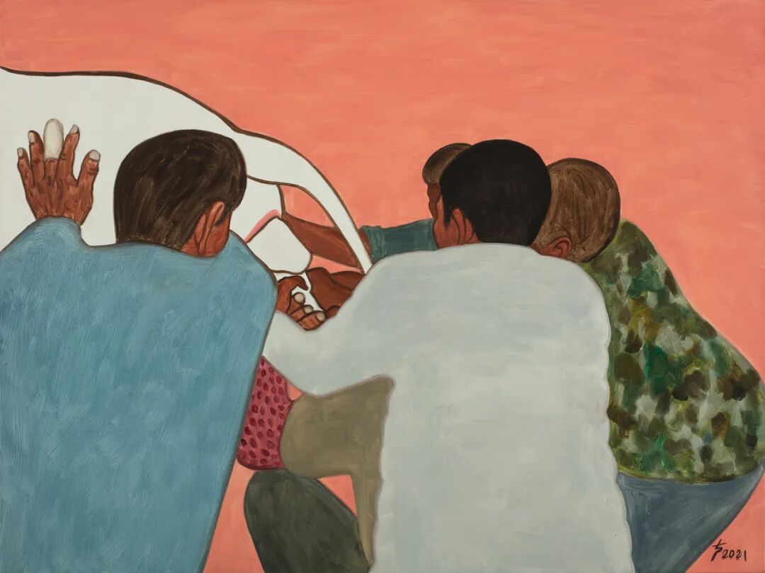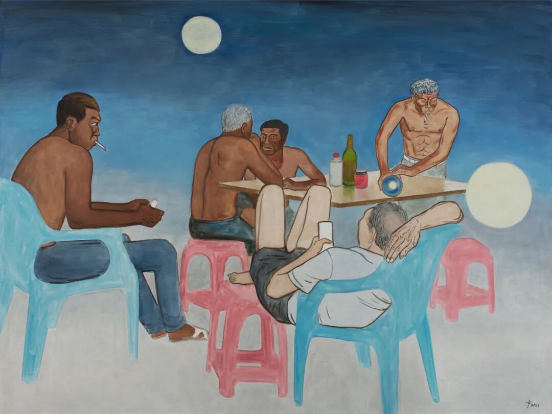 刘声是一位很关照现实的画家,他行走在珠三角,观察并记录着周围的人与物、人与人以及人与村,他们的模样、他们的关系,他们的变化。刘声通常会拍摄下周围的景象再作画,力求最大限度地还原大时代背景下社会的变迁。