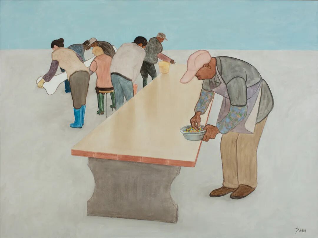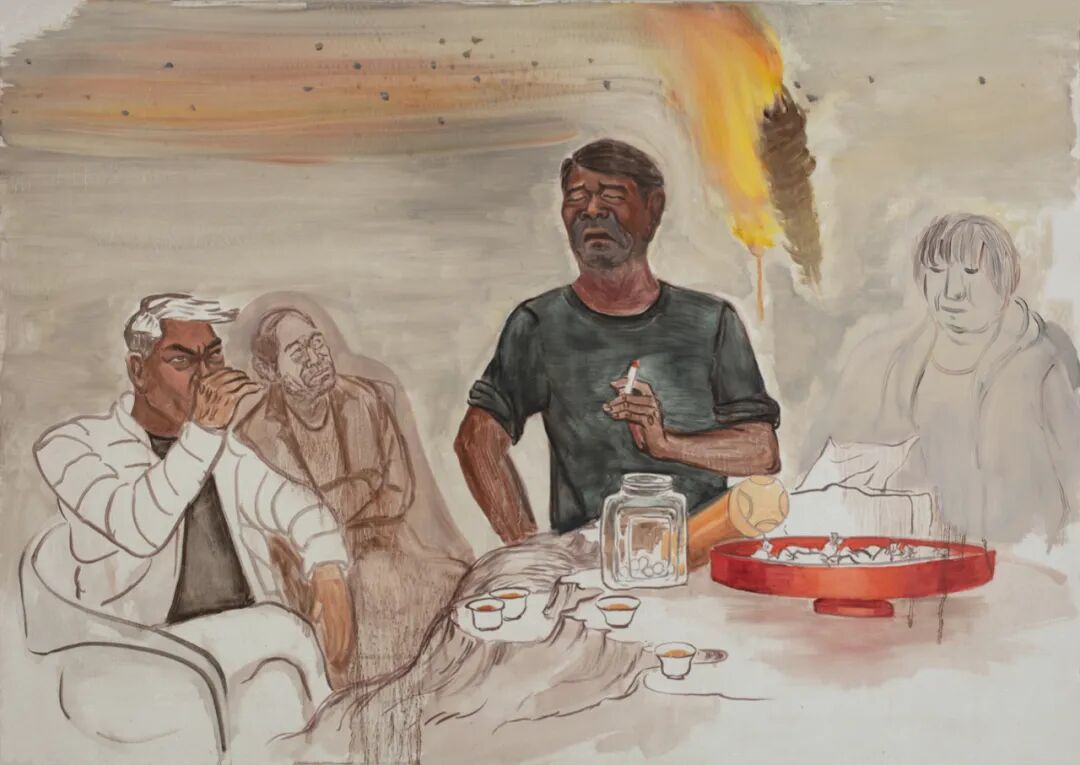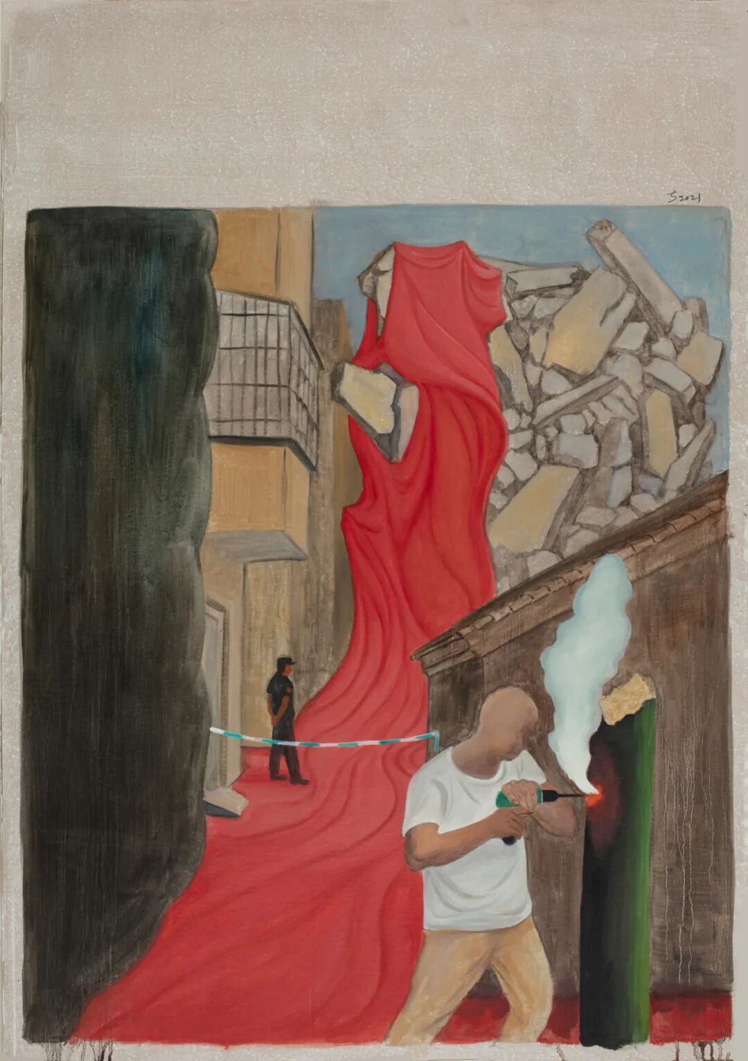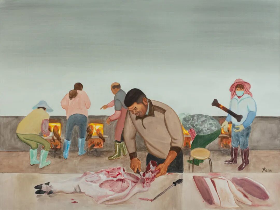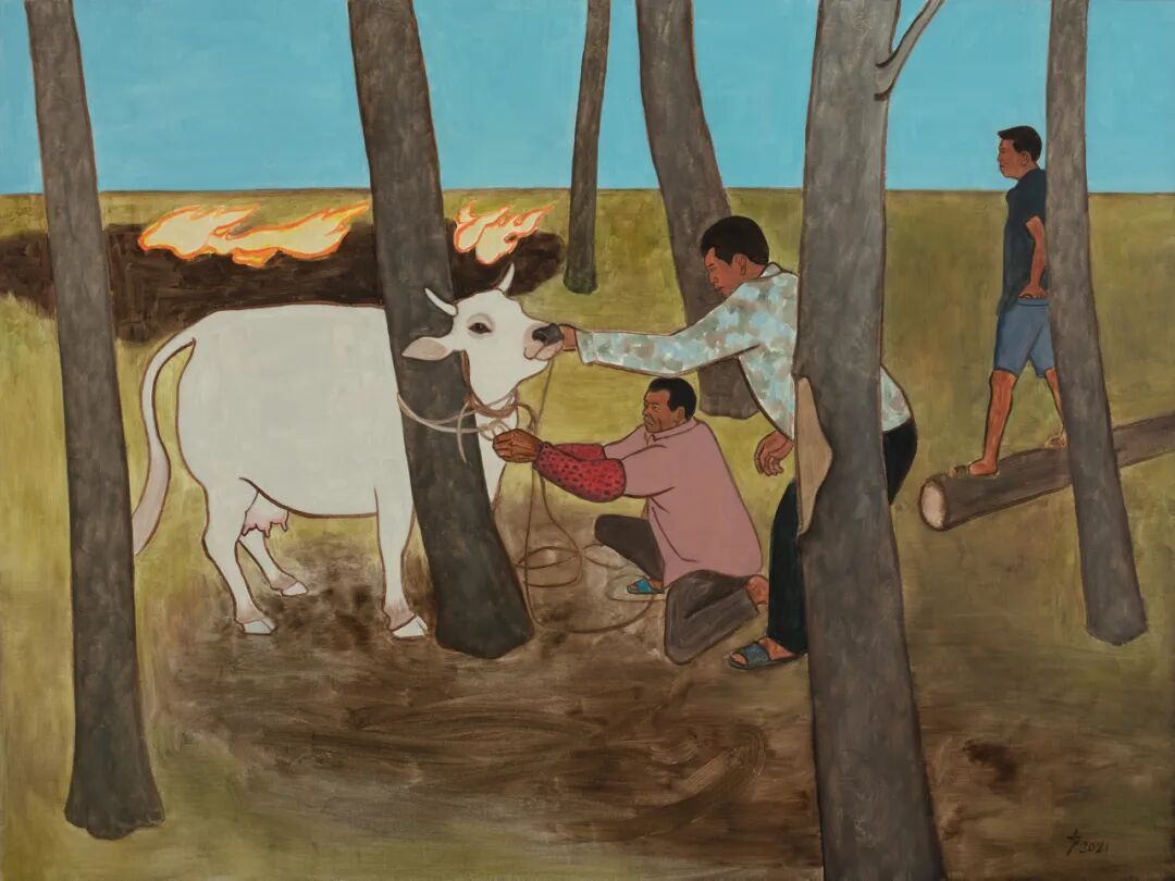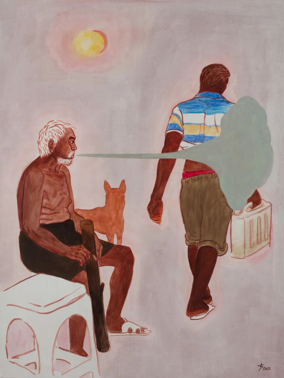 刘声是一位很关照现实的画家,他行走在珠三角,观察并记录着周围的人与物、人与人以及人与村,他们的模样、他们的关系,他们的变化。刘声通常会拍摄下周围的景象再作画,力求最大限度地还原大时代背景下社会的变迁。