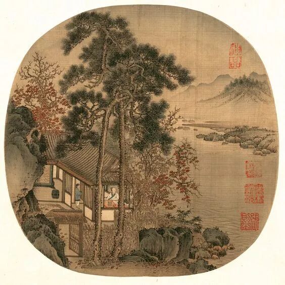 刘松年工山水人物,山水皴法受李唐影响,画风笔精墨妙,变雄健为典雅,水墨青绿兼工,着色妍丽典雅,常画西湖,多写茂林修竹,山明水秀之西湖胜景;因题材多园林小景,人称“小景山水”。