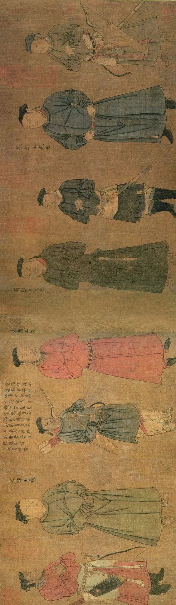 《中兴四将图》卷(旧传刘松年作),绢本 设色 横90.6cm,纵26cm 中藏国历史博物馆。