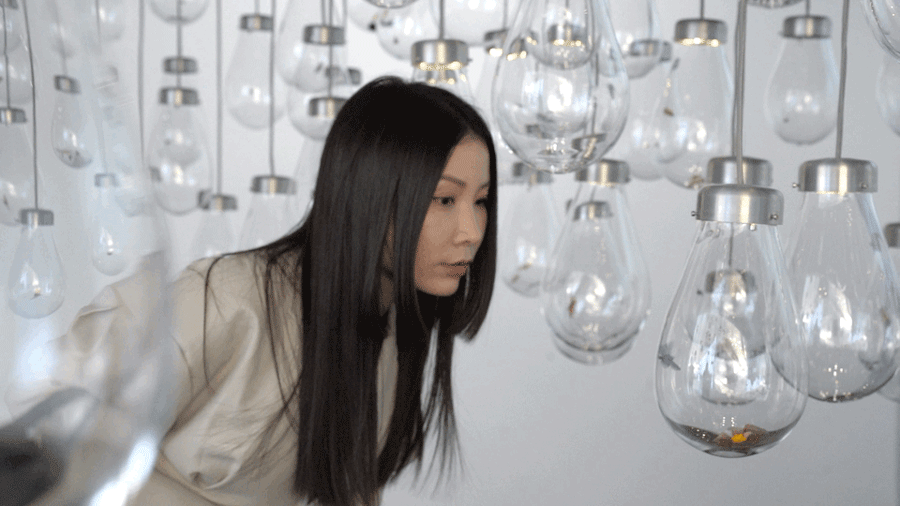 它像是一场增强现实(Augmented Reality)技术的“生物表演”,与每一位前来的人互动。Curiosity Cloud的装置由 264 个悬挂的吹制玻璃灯泡组成,每个灯泡都包含一个手工制作的昆虫模型,暗藏着91个热成像摄像头,还有很多声音传感器,这些设备会测量观展者接近灯泡时的距离,接受到感应的灯光和昆虫在共同震动的时候达到一个比较和谐的效果,设计用心,非常逼真。