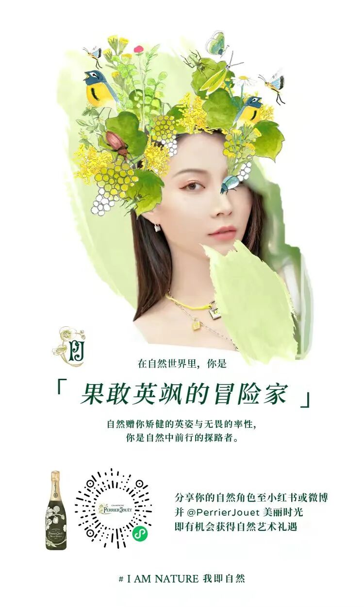 来不了的小伙伴线上即可参加【我的自然角色】体验活动——即刻关注@PerrierJouet美丽时光 VX官方账号,前往【MyPJ美丽时光俱乐部】参与自拍互动,生成海报后即可分享【我的自然角色】。