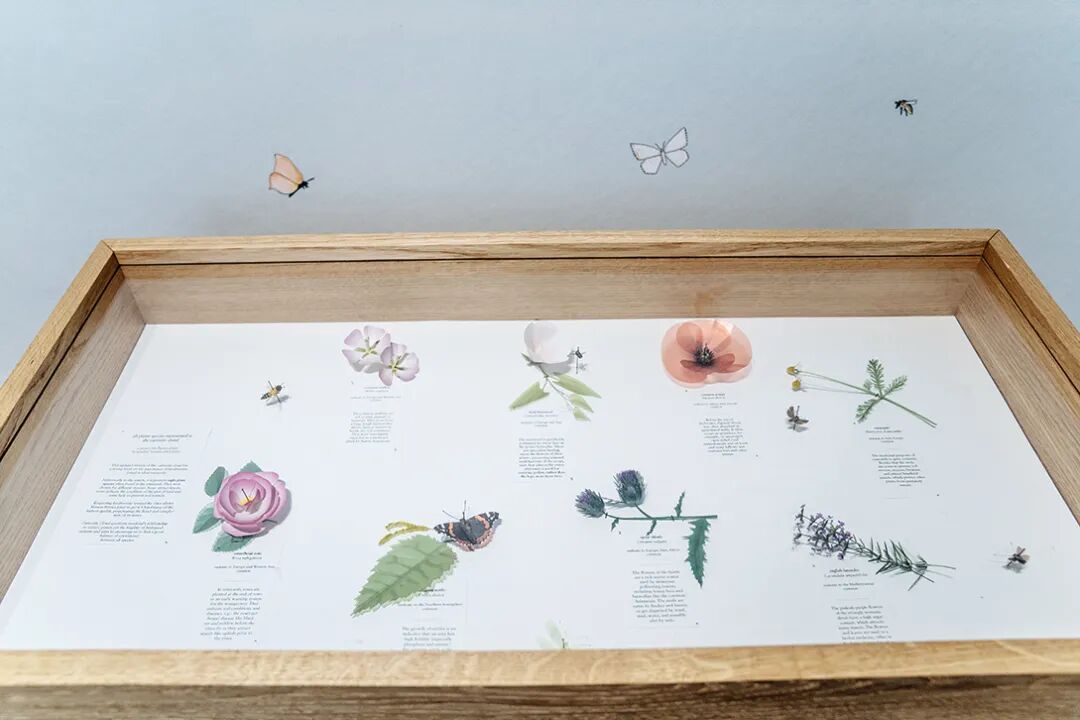 由一张橡木桌和两个镜子组成,上面装饰着金属质地的叶子、花朵和昆虫,它们的出现和消失取决于游客与装置的距离。当有人靠近时,桌子上的树叶和昆虫会平躺,一旦离开,它们就会发芽和生长。