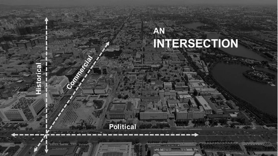 宏大叙事与世俗日常、天下与眼下、新与旧、文与野,两个时空交错的平行宇宙,孕育出北京城市内在的矛盾特征。这个项目位于两种对立性质空间的交叉点上,由两种对立性质的功能组合而成,要回应两种对立的设计诉求:一面是政治性的长安街,一面是商业性的西单北大街;地上是公共空间,地下是商业空间;既希望提升城市活力,又需要保持场所的平和;既要改善商业空间品质,又要抑制外部商业展示;即要接近地气,又要提升格局。凡此种种都很具有象征性。