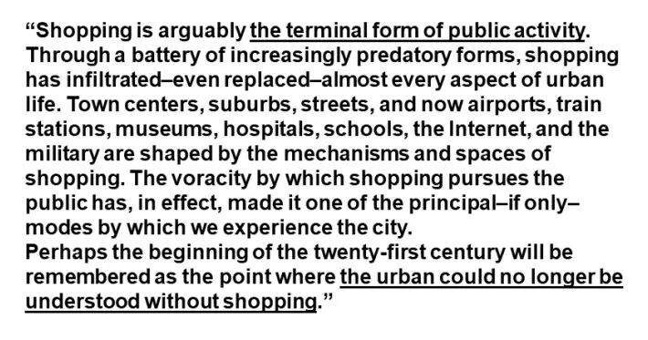 最后也最重要的一点还是与价值观有关。商业建筑以大众化而仪式性的方式,尊重且规范着日常世俗,瓦解而又再生传统,从中生产社会、文化和审美意义,这一点很后现代。撇开所有的思想内容,一个向所有人开放的场所才是一个真正的公共空间。