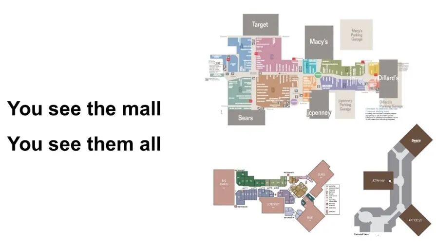 “You see the mall, you see them all”这句行话当年听自一个老建筑师,至今记忆犹新。揶揄的是购物中心的千篇一律和设计的套路化,但同时也说明其中有明确而稳定的规律可循,可以举一反三。究其原因,除了商业模式一样,还因为基本空间结构的一致和通用。如果我们扩大一些视野,深入到形式之下观察,会发现不管在商业建筑还是文化、工作、交通、教育、医疗建筑,是城市空间还是内部场所,Mall作为一种基本的空间组织形式广泛存在,虽然具体的应用和呈现可能千变万化。本质上是一种通用的城市性公共空间系统。