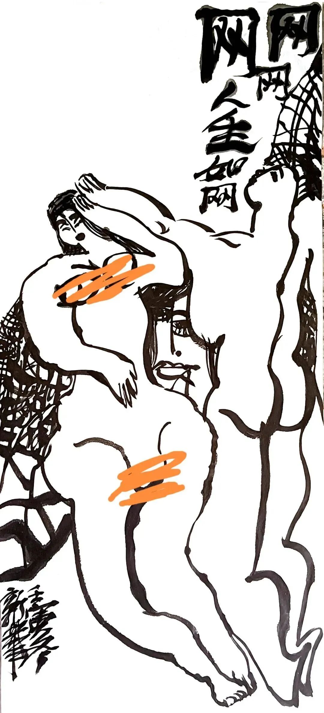刘新华先生的画关注度极高,有人评论其“敏锐把握当下生活的温度”;有人评判说“一股野气凸现其间”;更有人赞叹不已“满纸烟云不计横竖轻重疾徐大小自安”……他自己评价自己“知白守黑,看见黑白有魂魄”。见仁见智中,我独被他作品的激情四射所吸引,暗自思忖能交付出这般作品的,究竟是怎样一个人。