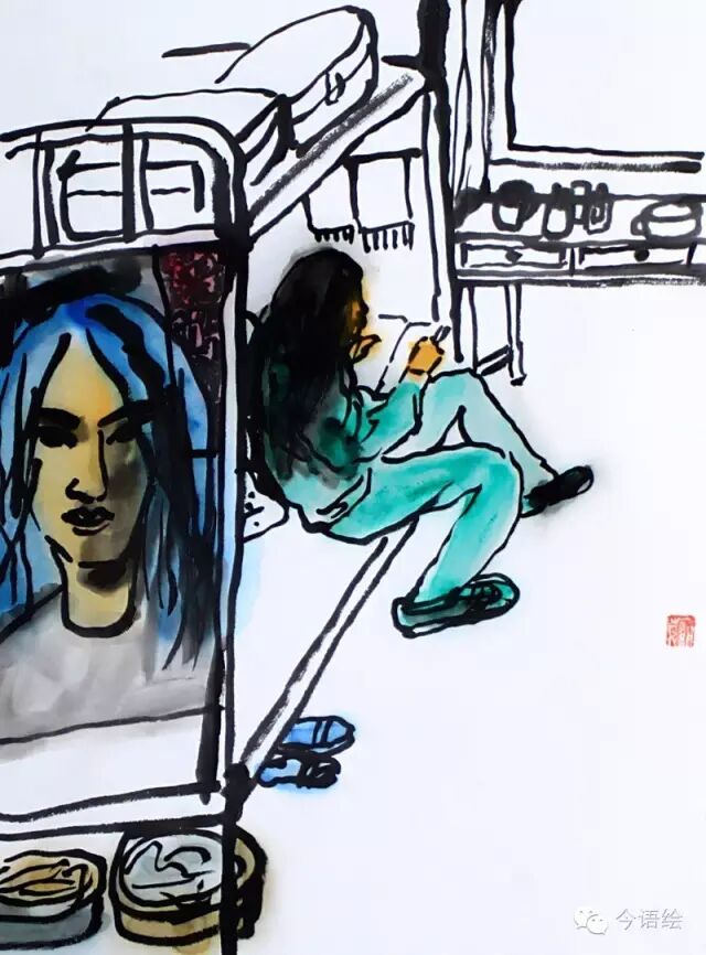10,刘新华在孤独中开始思考,决心做点什么,不能白活。开始静下心来画画,请模特写生。为了未来的理想,于是画中出现了漂亮的色彩。