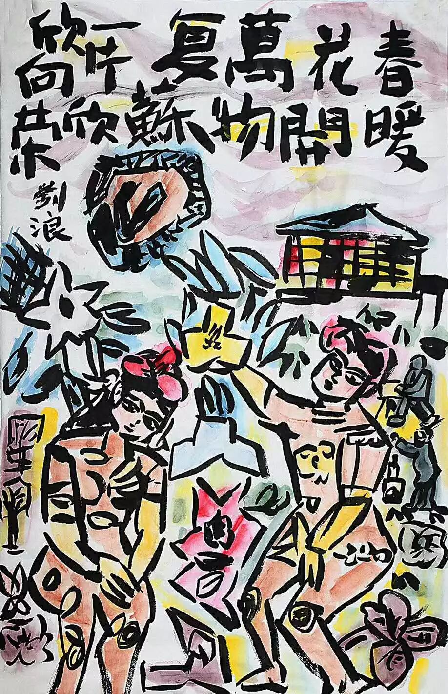 刘新华,艺名刘意,他说他喜欢金庸的老顽童。自由自在,无门无派,无师但也谁都是自己的老师。经常用调侃笑谈人生。认为真是第一位的,有真才有善和美。真心是道场,自在自得,真实的活着,用心做自己喜欢的事情。画画就是画自已,有什么状态就有什么样的画。
