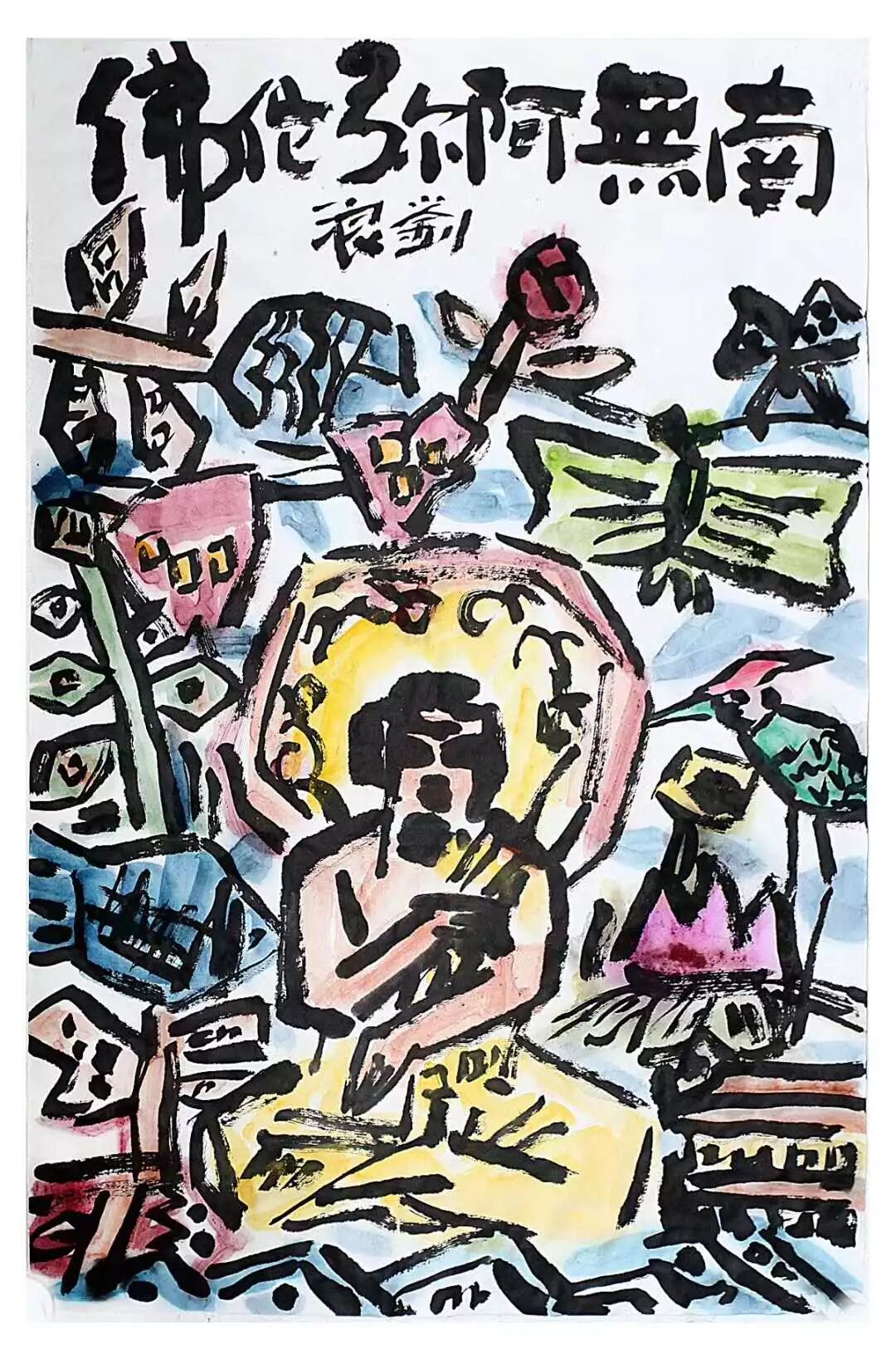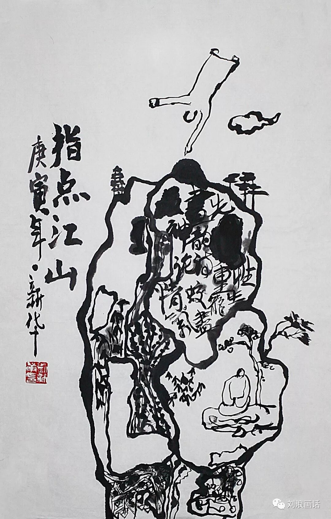 刘新华说他常常早起闭目看见各种符号色彩,凭空而出。这就是他的源泉。