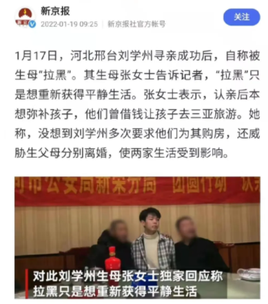 原来,有媒体报道,刘学州在认亲之后,逼着生父生母为他买房,甚至威胁他们分别离婚。