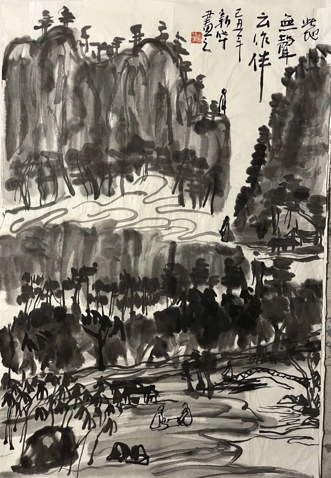 刘新华,画家,号刘意、刘焱。居北京,主任编辑,在大学学艺七年。高更和凡高这两有“高”字的高人说他看见“光里有灵魂”,我说我知白守黑,看见“黑白有魂魄”。看黑的有象、看白的有气。万物一体,天地与我共生,万物与我为一。