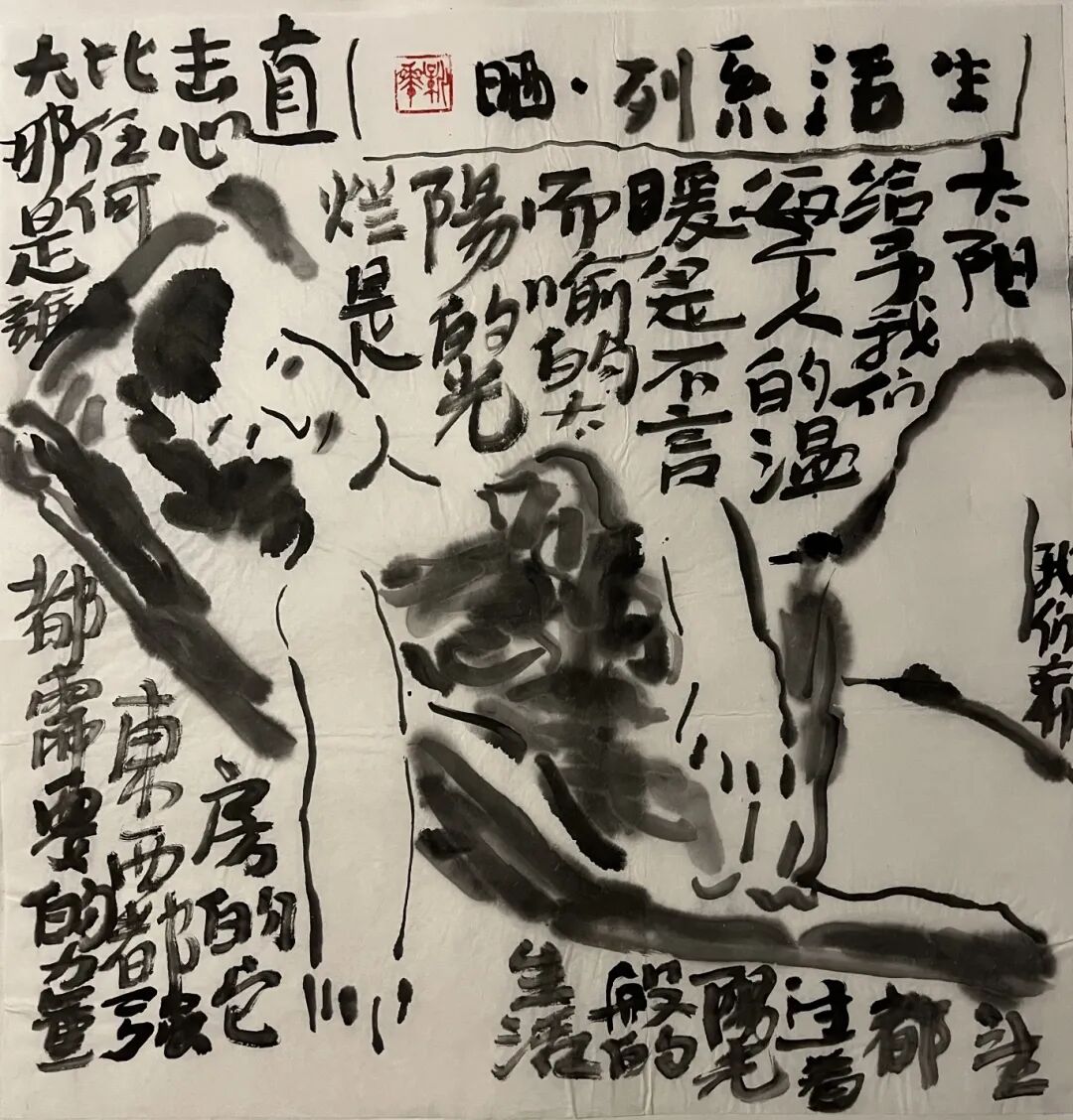 我的绘画是热烈和阳刚派,我以为如果艺术没有像太阳一样照耀和温暖着人类的精神,给人类精神以自由的生发和成长,哪还要艺术干什么?我的绘画,正是要表达岀自由的阳刚的生命的力量。我的绘画是生长的,是开放的,进取的,是精神层面的表达。我不再是古贤的小学生,也不会去简单地再现生活。我要从自由精神的层面升华和強化今人的绘画,展示人类审美进程里今天的面貌。我会率性地表达自我,发展自我,深刻自我,強健自我,成为自我,做自己时代的艺术家。