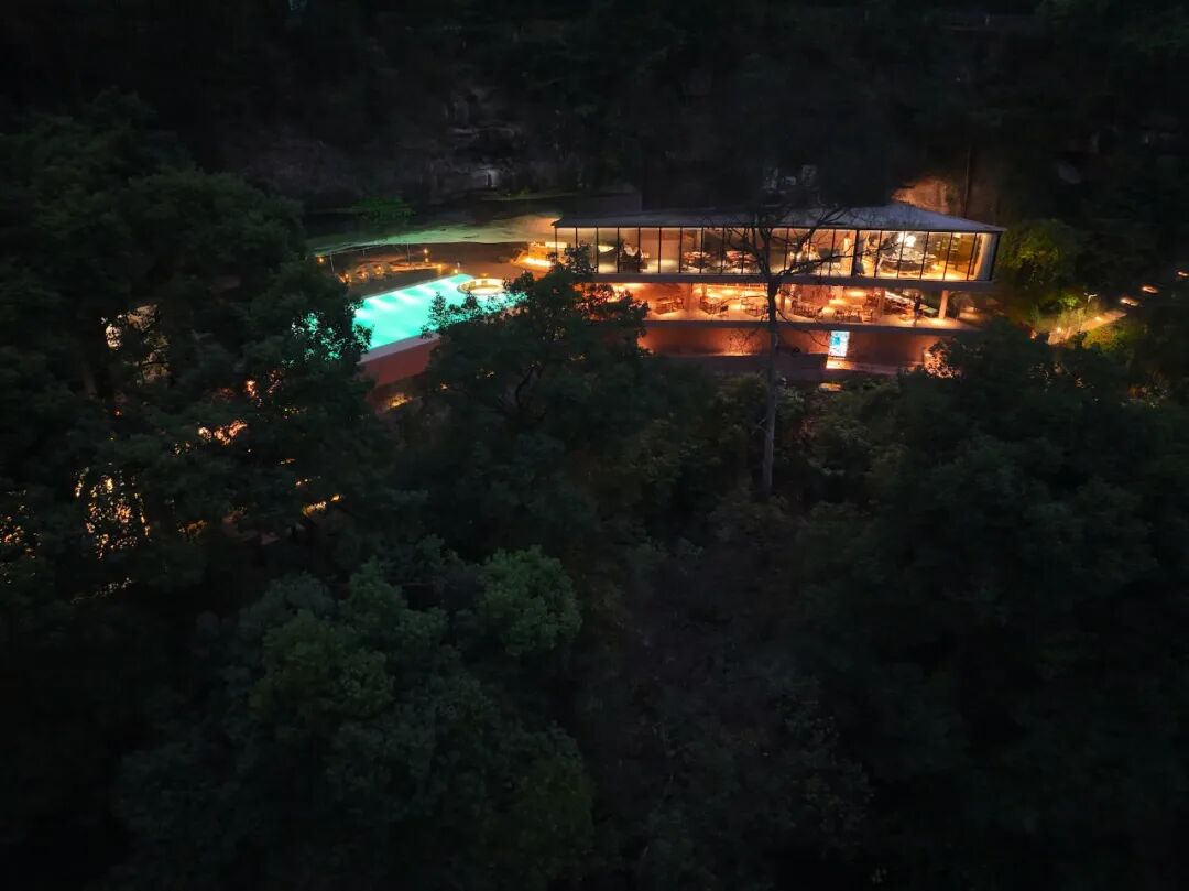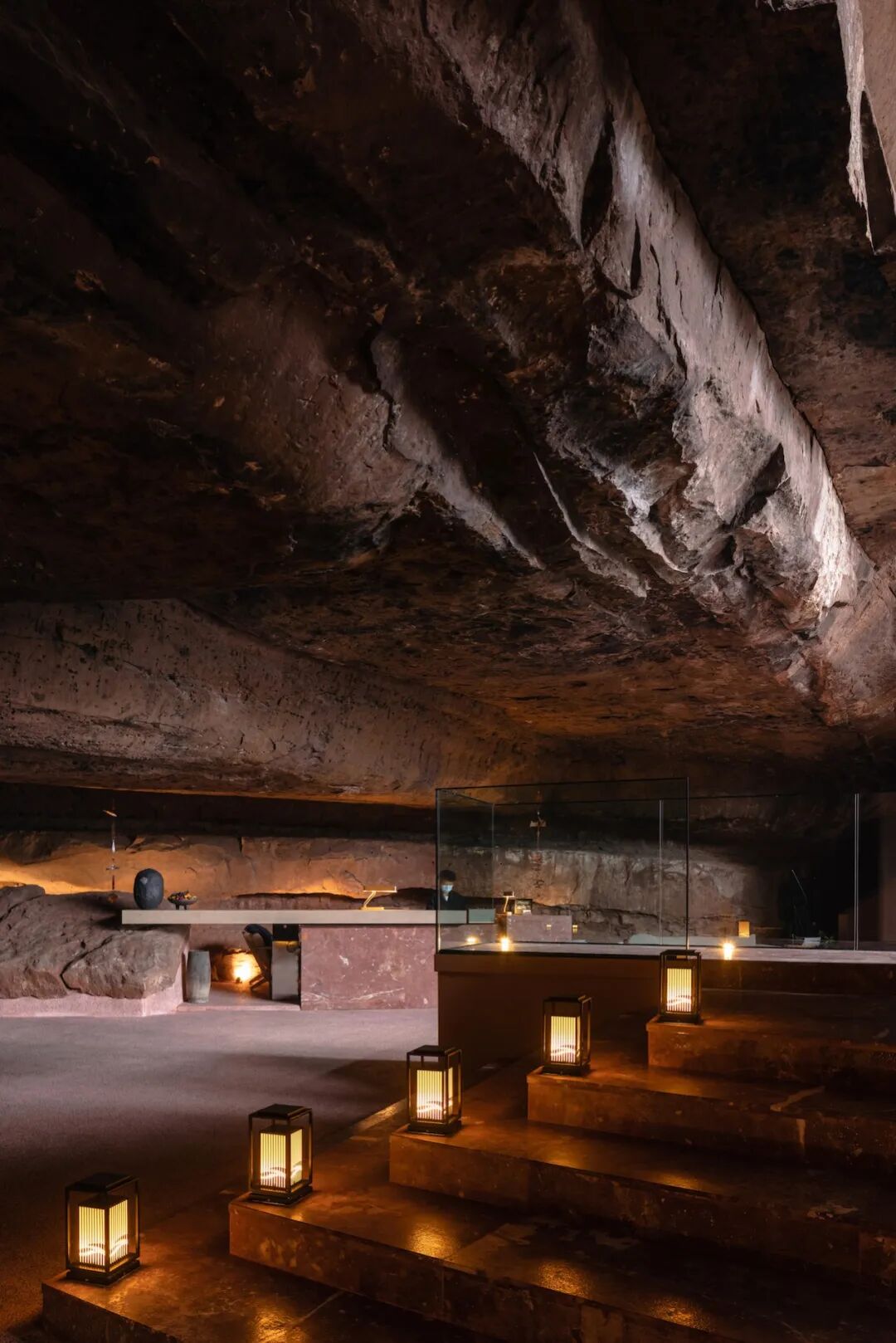 天然圆形的空间,具有洞穴的特征和力量感,将此处作为大堂前台,天方地圆,浸透着中华民族先民最朴素的哲学。在这里能遇见第一个瀑布从断崖折流而下。