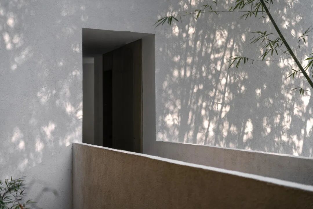 在阳光的照射下,竹林光影,映在白色的墙面,犹如江南竹林那般令人心旷神怡.....