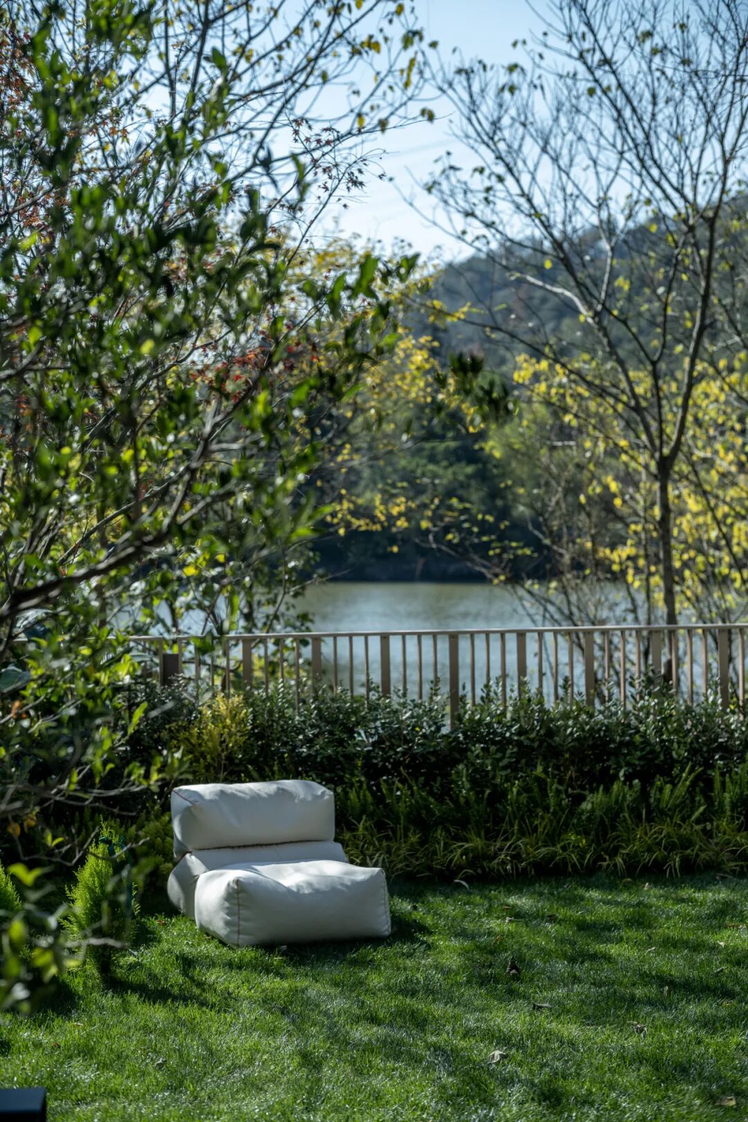 别墅紧临水岸,目光所及,湖水清澈,时有鸳鸯、白鹭悠闲觅食,颇有生气,晴日下,似水面铺上了一层发光的碎银,万科因此为临湖的一排别墅起名为“水之墅”。