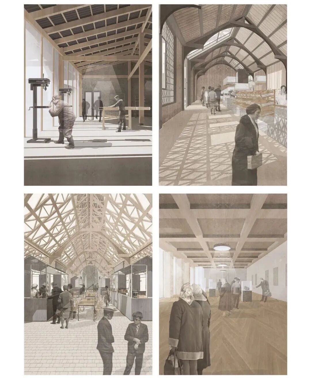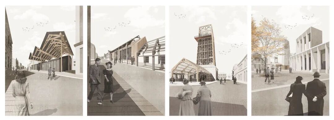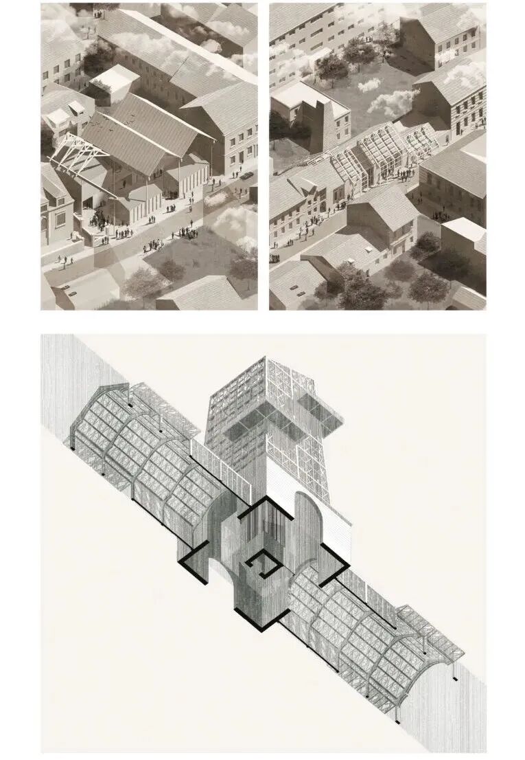 今年的项目旨在为该地区并提出一个新的聚集空间,创造出未来美好的愿景。每个学生都解释了这种新类型学可能是什么,并形成了自己设计想法。为了试图再次激活商业街,一家经典、过时的百货公司便成为了该工作室进行测试和试验的原型。