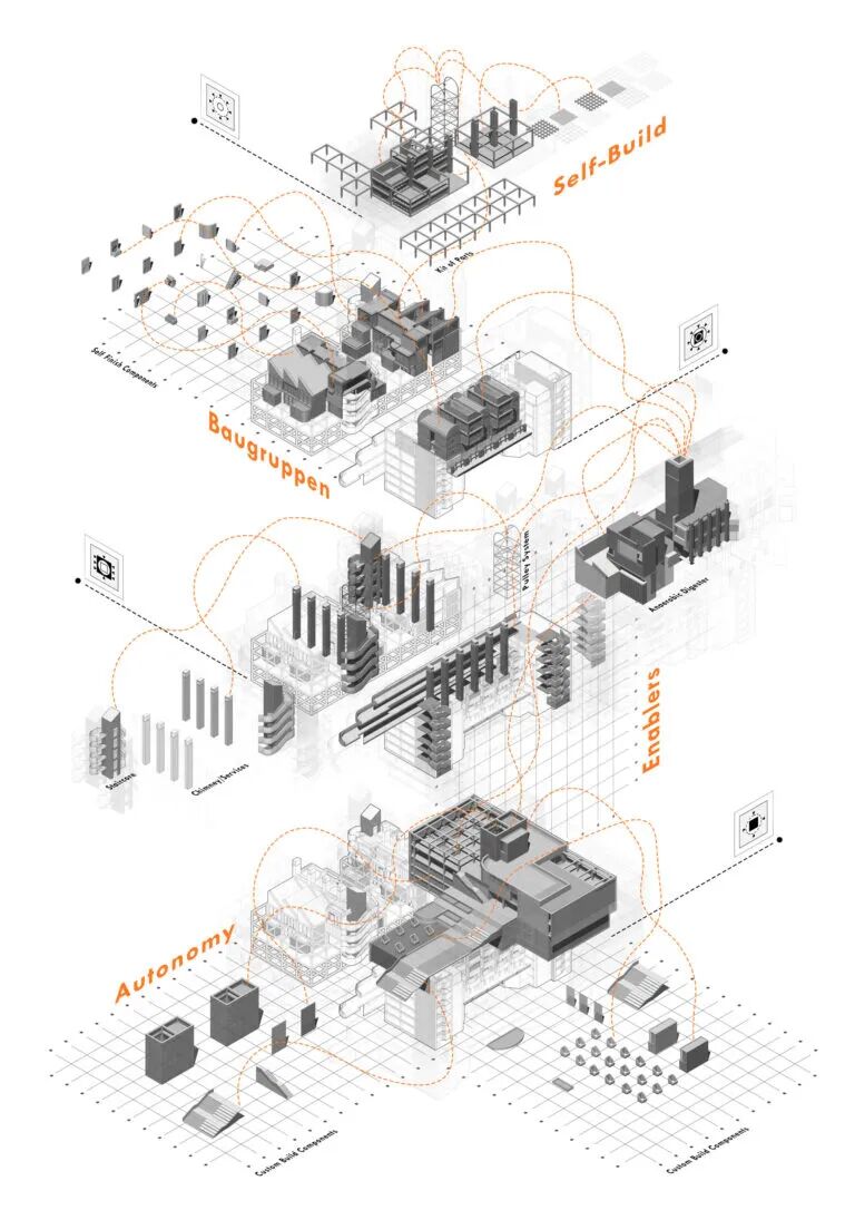 该项目的假设为:“该项目将伦敦安多弗住宅区(Andover Estate)为研究案例,目的是寻找伦敦战后住宅社区未来发展的机遇,并重新定义被遗弃的车库。”