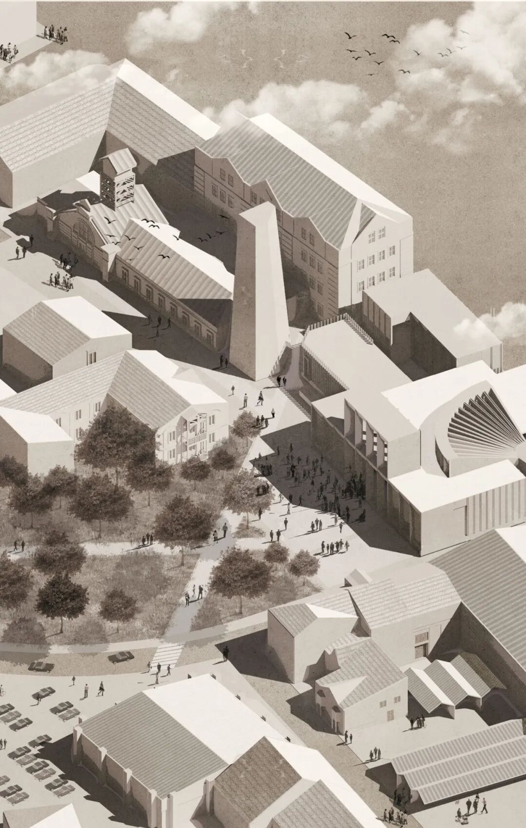 项目将盐矿镇的遗迹重新利用和改造,在保留未被拆除的废弃工业用地基础上使其成为一个拥有社区工作坊、共享空间和公共基础设施的多功能空间。