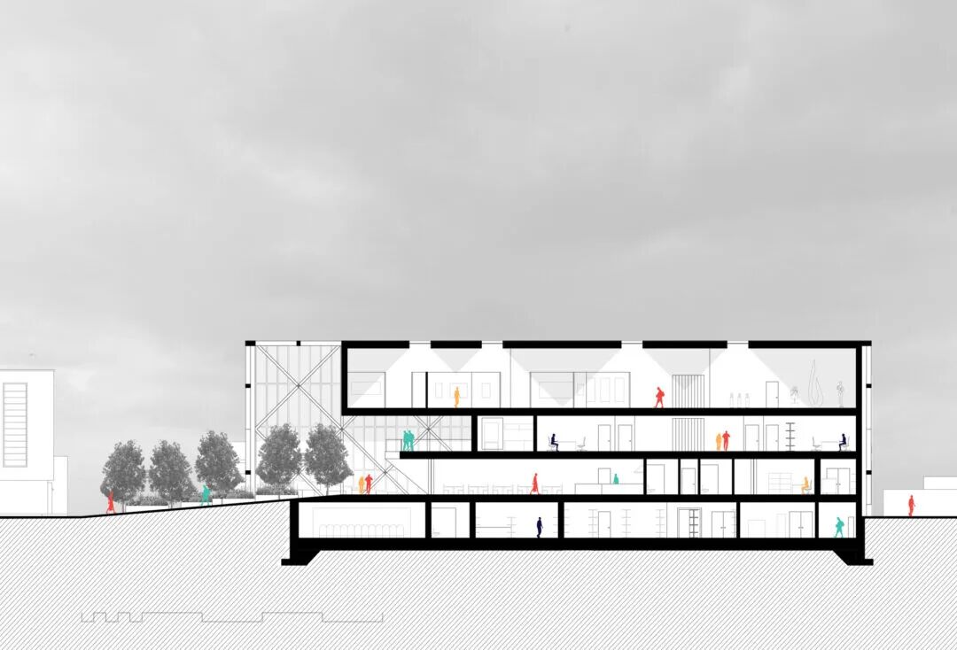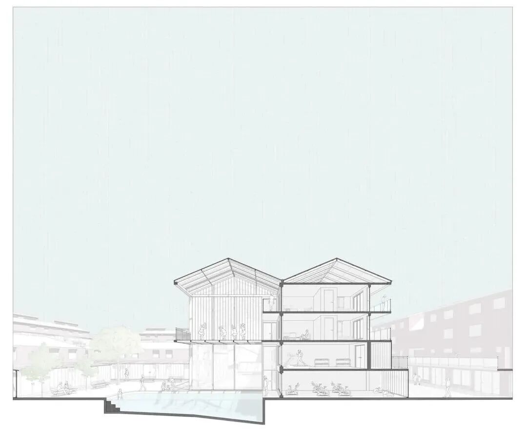 第一个项目是要求学生设计一个社区艺术馆和工作室来振兴城市。第二个项目要求学生设计一个青少年活动中心,其功能包括住宿和相关设施。