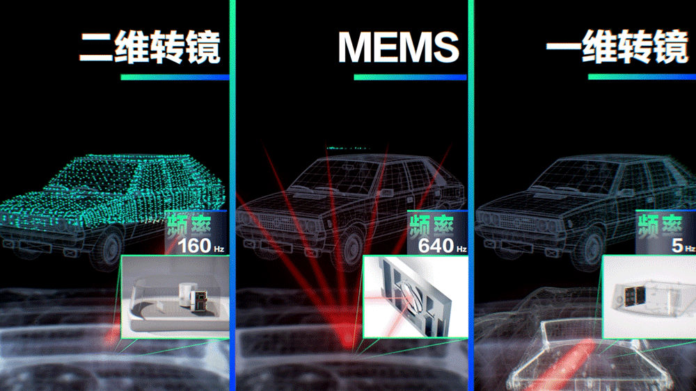 此外,很多其他技术方案都是“发射不够,反射/折射来凑”,只要镜子转的够快,一组激光收发模组,也能被反射成100线的效果。不过高速运作的电机和机械结构,对功耗和可靠性都提出了更高的挑战。