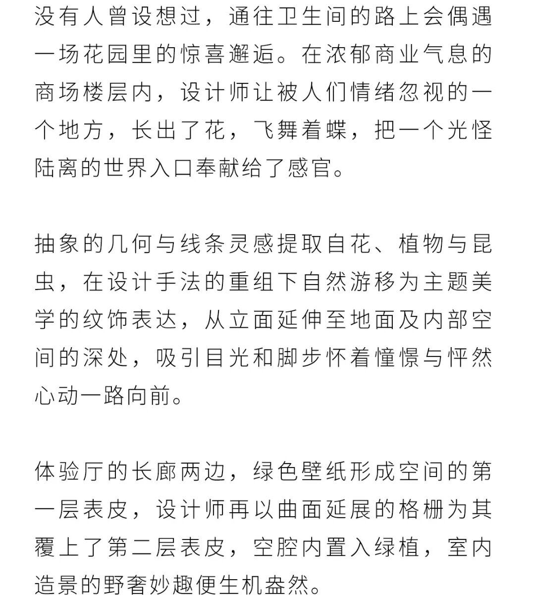 "对于商场来讲,卫生间是一个平等的开放式公共空间。它没有准入门槛,包容所有人在繁忙的都市生活中,停留在这里稍作休憩,整理仪容,再重新投入人生海海之中。