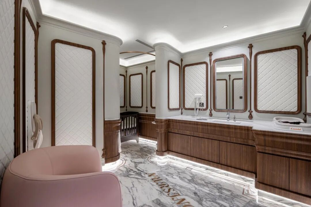 我们把通道利用起来,合理地分割出充足空间,把母婴室、无障碍卫生间,以及医疗急救室、亲子卫生间这些常被忽视的功能场所都一并融入其中。我希望这个空间大到功能分区,小到女生补妆、小朋友如厕等等需求都能够被设计用心地呵护到。就像德基为了照顾上班族通勤,很早就打通了地铁通道。