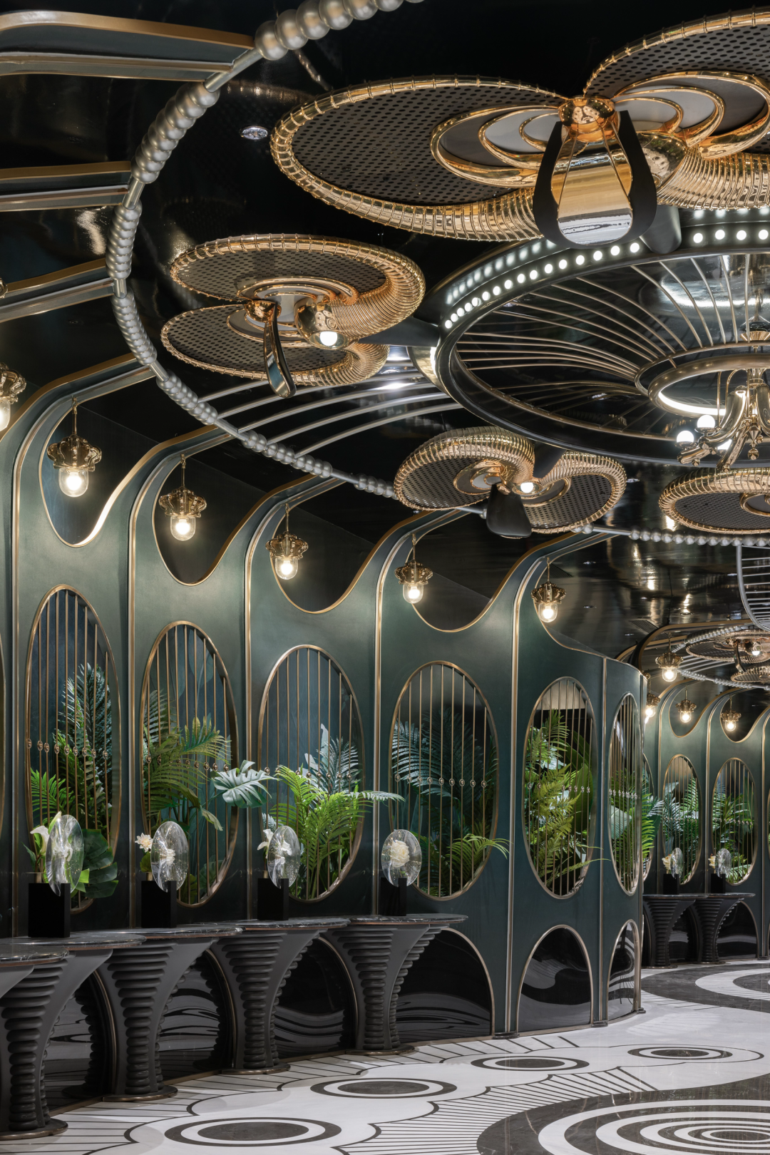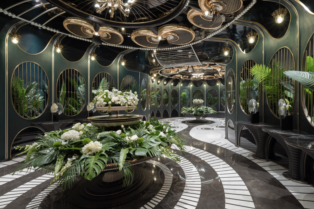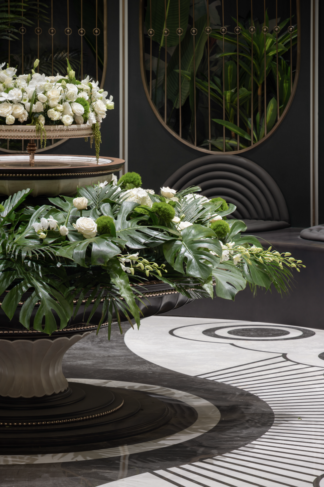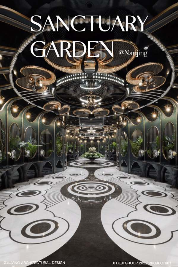 抽象的几何与线条灵感提取自花、植物与昆虫,在设计手法的重组下自然游移为主题美学的纹饰表达,从立面延伸至地面及内部空间的深处,吸引目光和脚步怀着憧憬与怦然心动一路向前。