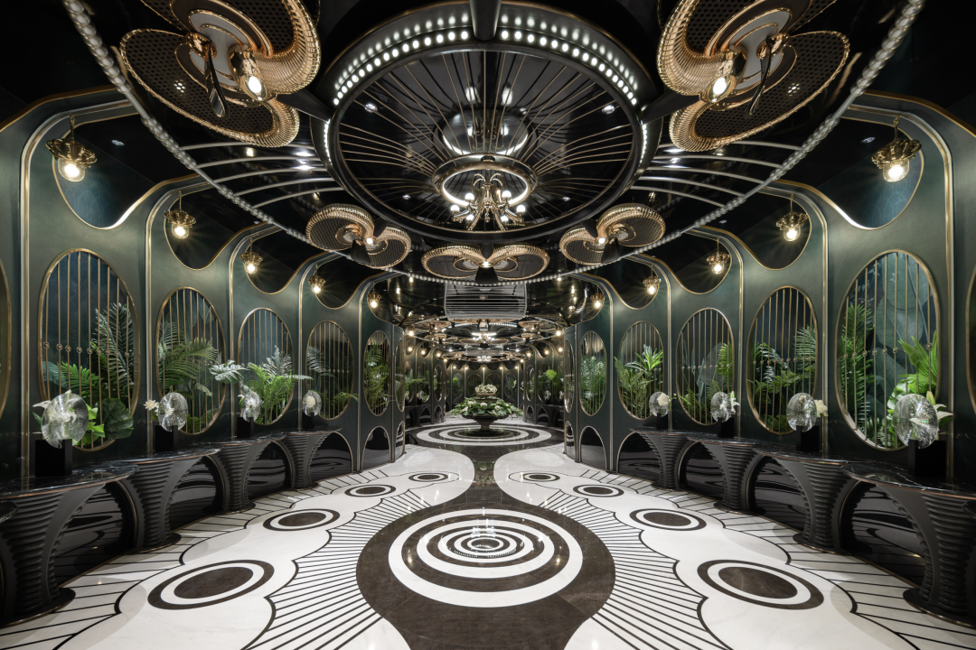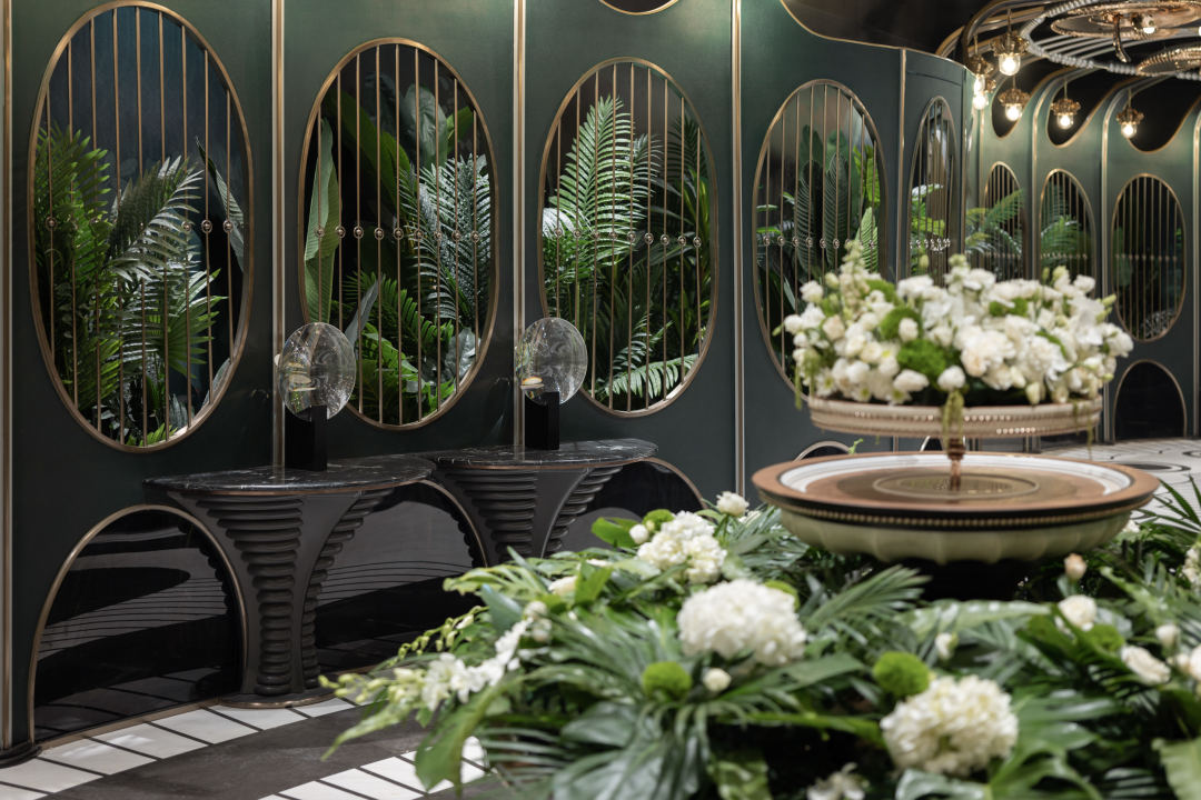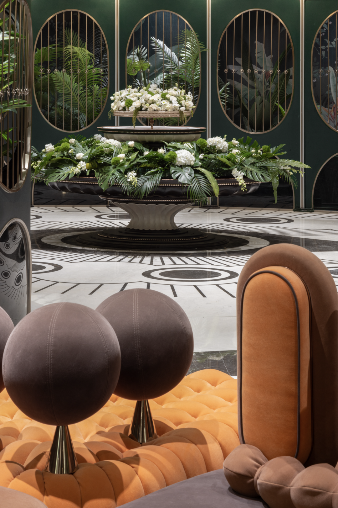抽象的几何与线条灵感提取自花、植物与昆虫,在设计手法的重组下自然游移为主题美学的纹饰表达,从立面延伸至地面及内部空间的深处,吸引目光和脚步怀着憧憬与怦然心动一路向前。