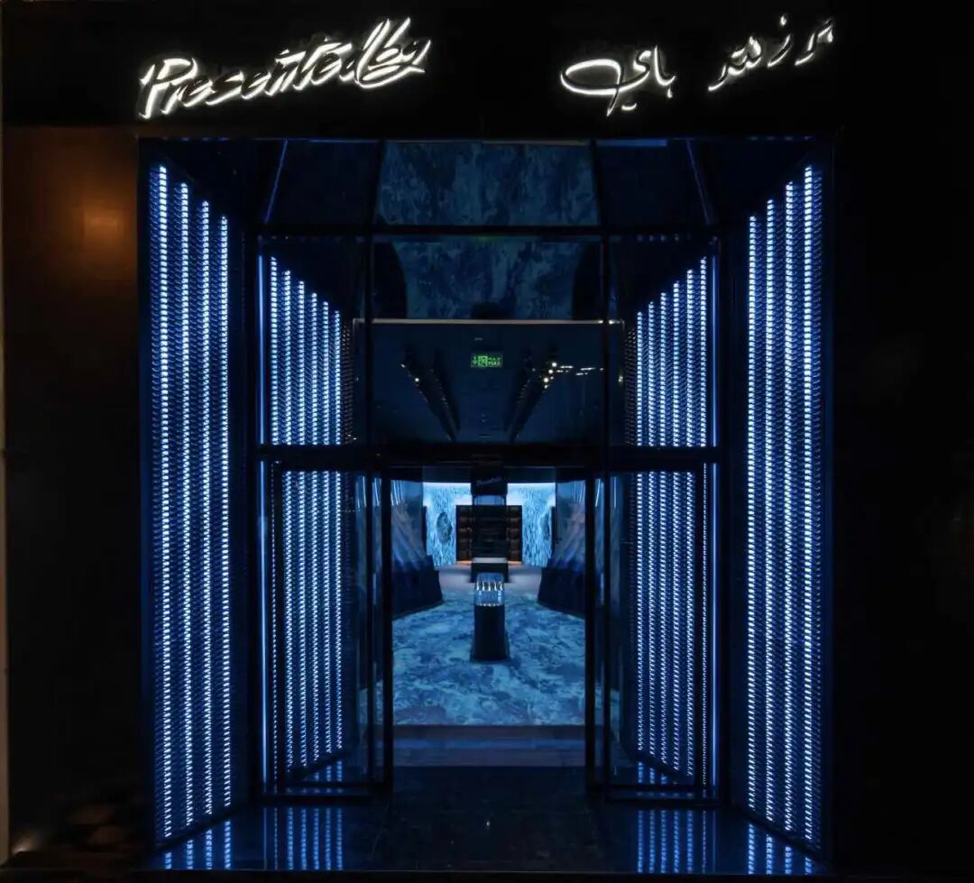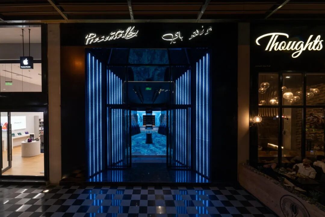 利雅得阿拉伯中心与Al Hokair集团旗下的Silkway公司合作,在U-Walk中推出了新的Presentedby商店,店面设计从沙特阿拉伯沙漠中的绿洲以及水等重要元素中汲取灵感,利用水的物理特性和元素衍变在商店设计中展现水的反射过程。通过参数化设计和虚拟数字仿真技术使得设计能够展现出来。