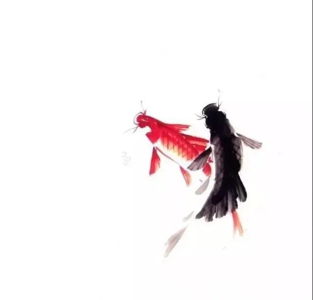 步骤一:先蘸淡墨,笔尖再蘸浓墨,先画鱼的背部,再画鱼的头部、鱼嘴及鱼须。侧锋画背鳍,中墨画鱼的腹部,顺势画鱼尾,然后画胸鳍和腹鳍。