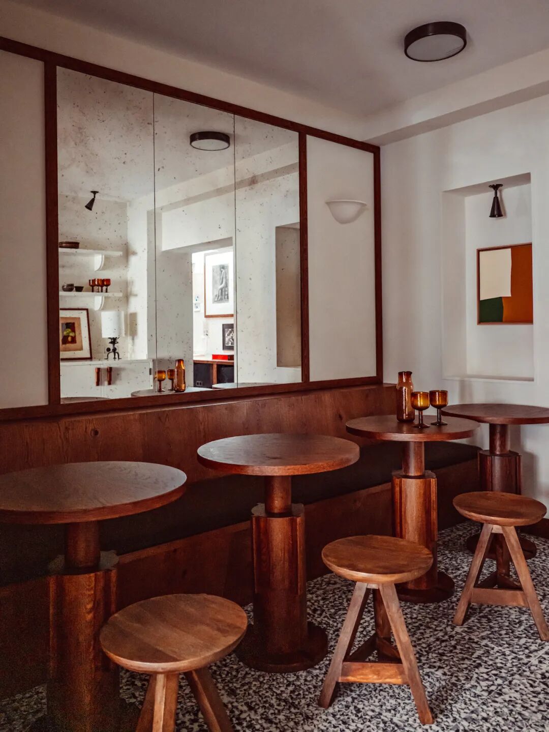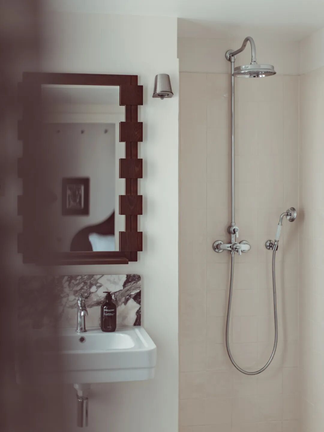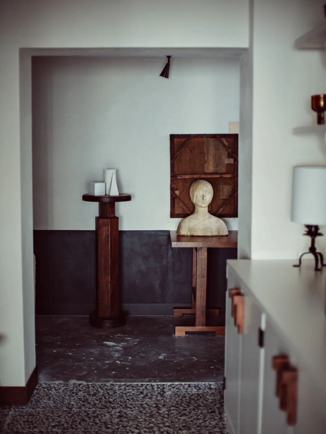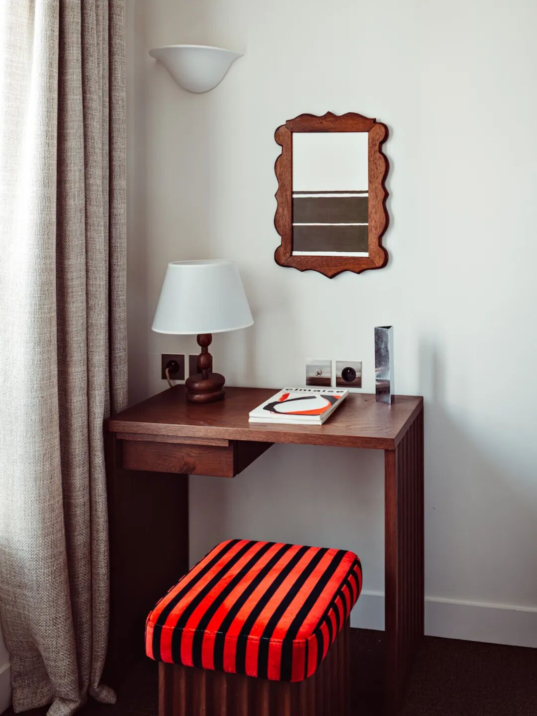 Entering from a quiet alley, you'll see a large pottery fresco by the young Parisian potter Maximilien Pellet. This oversized mosaic subtly divides the hotel into two distinct areas. The reception and the spiral staircase lead to the room on the right and the public space on the left.