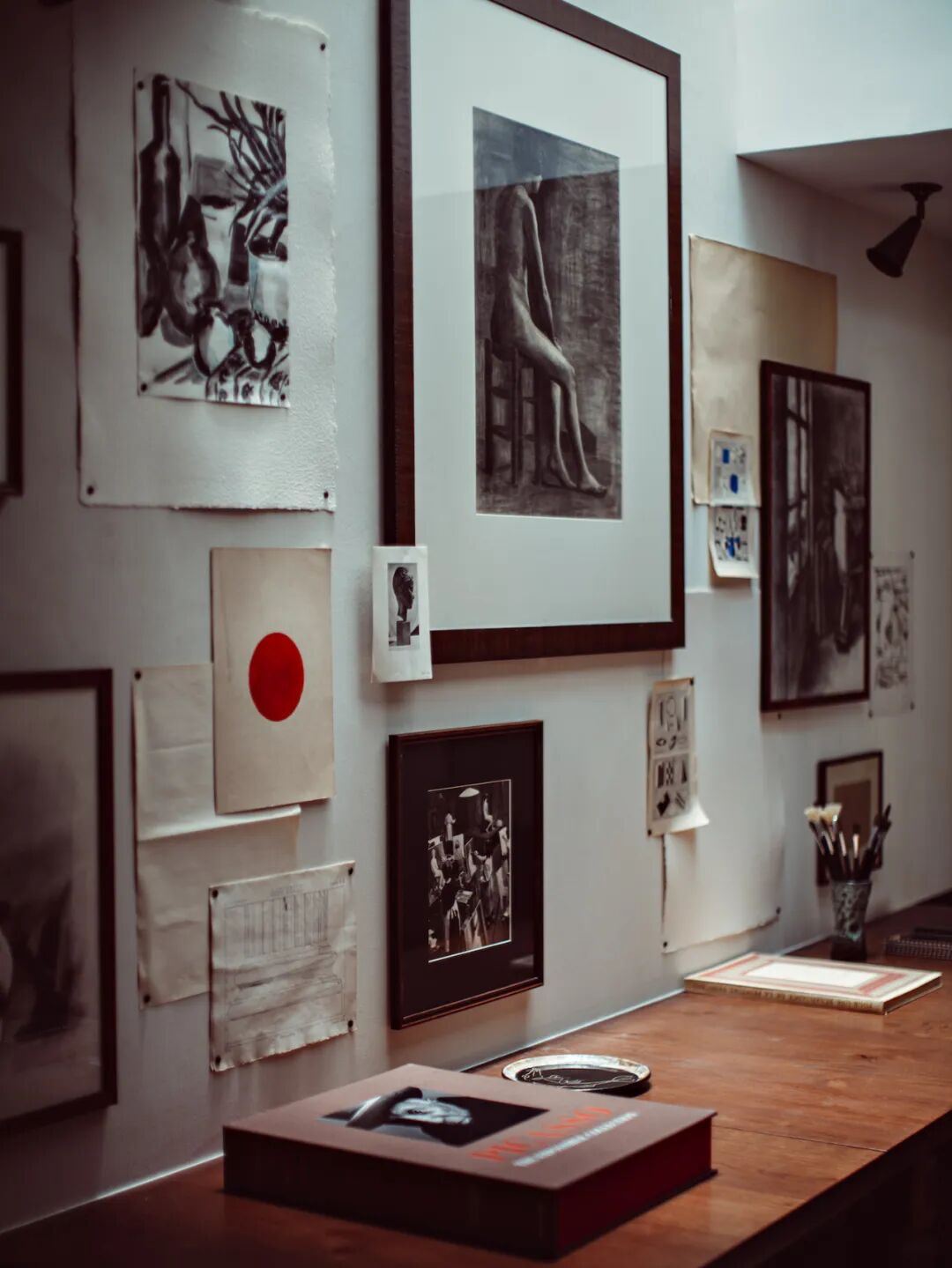 Beyond this convivial meeting place is a dedicated artist studio supported by a rustic 10-meter trestle table. Introductory and advanced courses in applied arts, organized with the Grand Chamière Academy, include painting, drawing, sculpture and photography, and are available to guests and the public. This space reflects a real artist's studio.