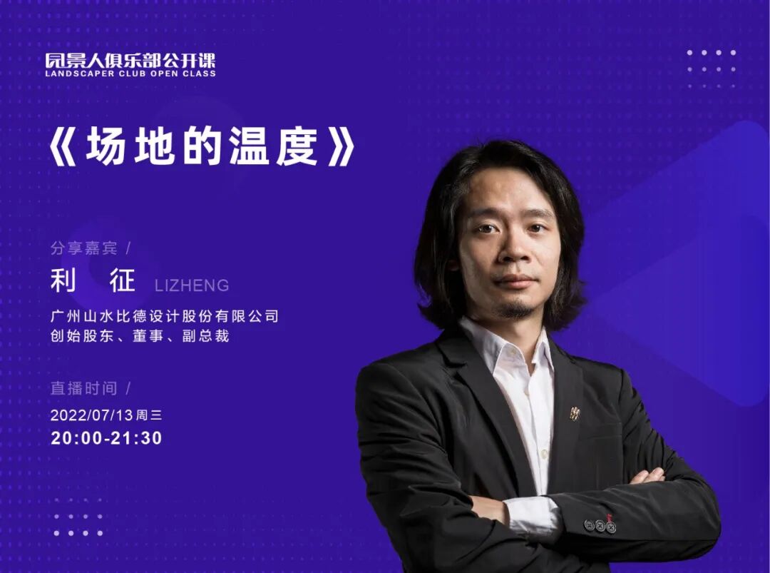 7月13日(周三)晚上20:00,广州山水比德设计股份有限公司创始股东、董事、副总裁利征先生为大家带来公益直播分享,《场地的温度》!让我们一起看山水比德是如何进一步恢复人与自然、人与场地、人与人之间的温度!