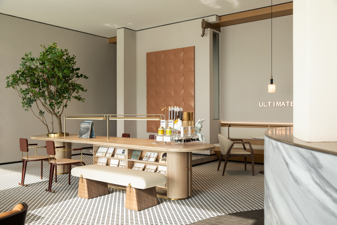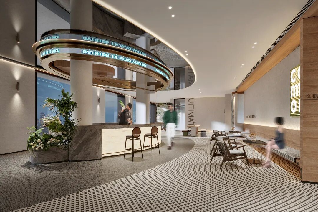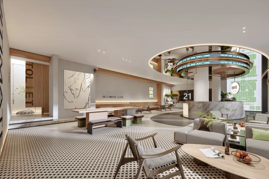 The vitality, happiness and harmony are the foundation of the community, as well as the meaning we pursue- connecting each household to create a diverse gathering place and empower future life. The unpartitioned public area is both an independent lifestyle touch point and a beautiful collection of connected areas, outside which there is a relatively quiet and private negotiation area. Here, the aesthetic taste of the scene is elevated and the attributes of the community living room are more obvious, with each detail showing the sense of quality and artistry, and revealing the constant attraction of the space.