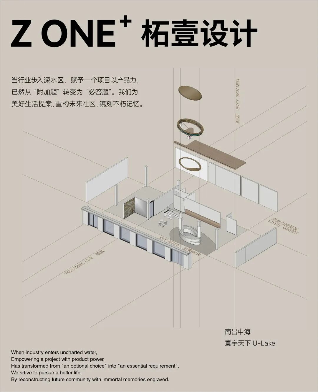 秉持“设计在美学之外”的哲学,柘壹设计Z ONE⁺深谙地产产品的顶层逻辑与展示空间的长效构建,本次担纲南昌中海·寰宇天下U-Lake售楼处的室内设计。源起于甲乙方思维和以用户为中心的产品视角,设计师王承超引领团队,深度展开对未来社区的无限探索: