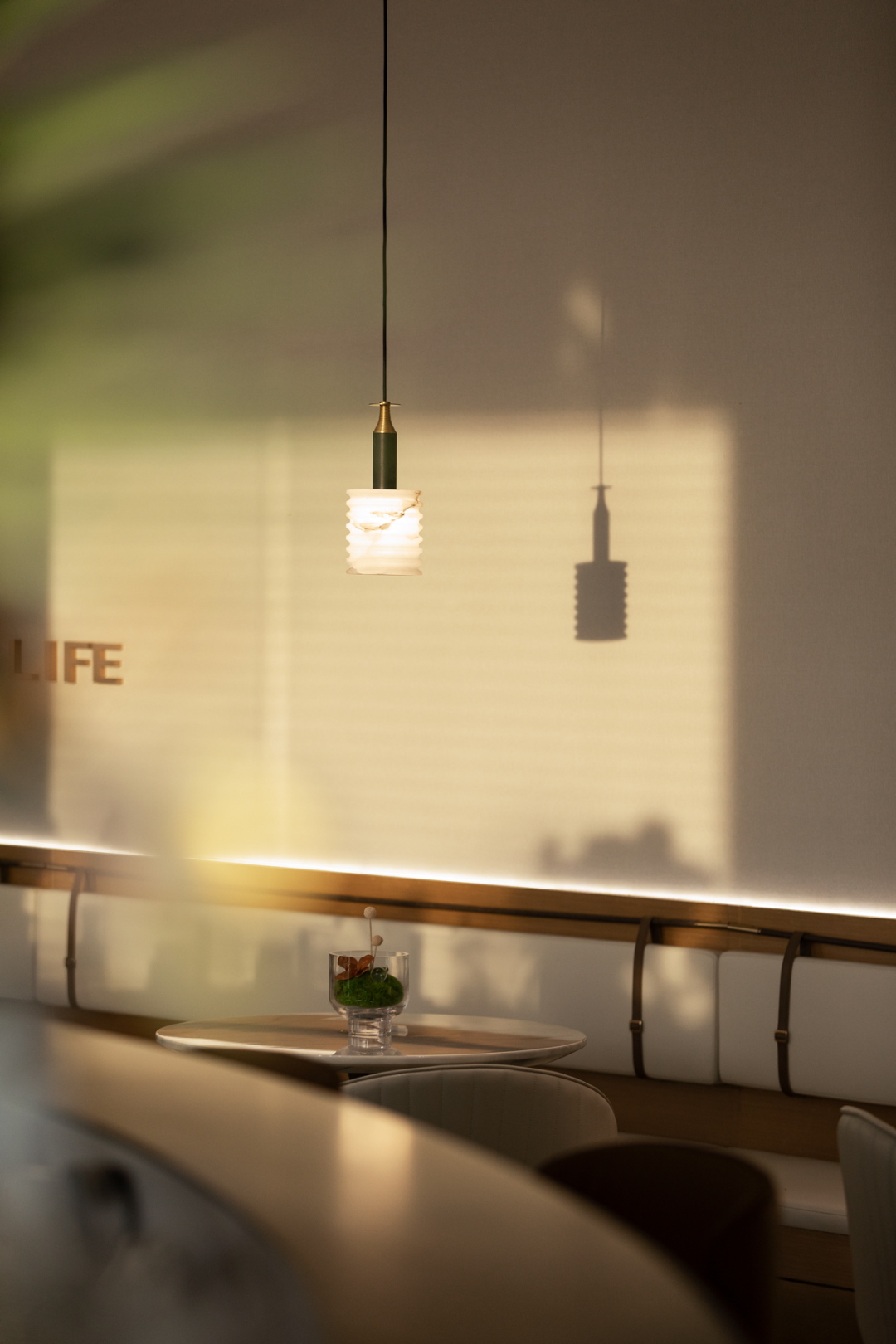 “思想的交织、文化的共鸣、艺术的熏陶、LED科技的启示、精神的同频、情感的归属......在‘城市浪人计划’中,功能与美学结成了同一阵线,对应的是时光的轨迹、城市的记忆。”写意浪漫的花屿岛台,是花店与水吧的结合体,一面繁花朝着门户,一面静谧吧台掩于花后,勾起人们对生活方式的丰沛想象 —— 昼咖夜酒,惬意微醺,共享自在。